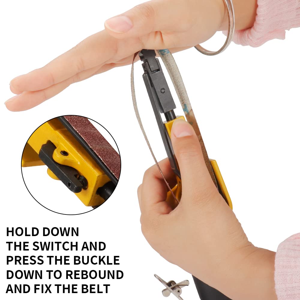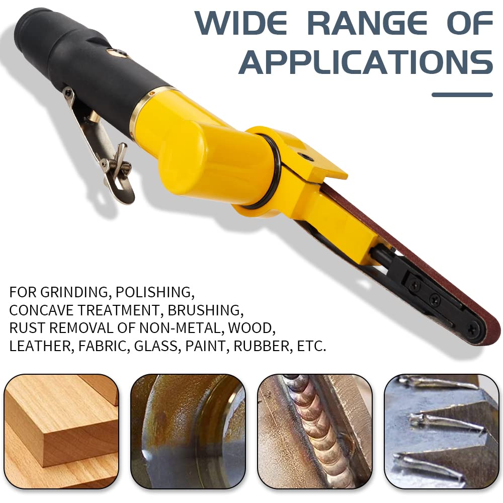 - Package Include: 1 x air belt sander and 2Pcs Sanding Belts