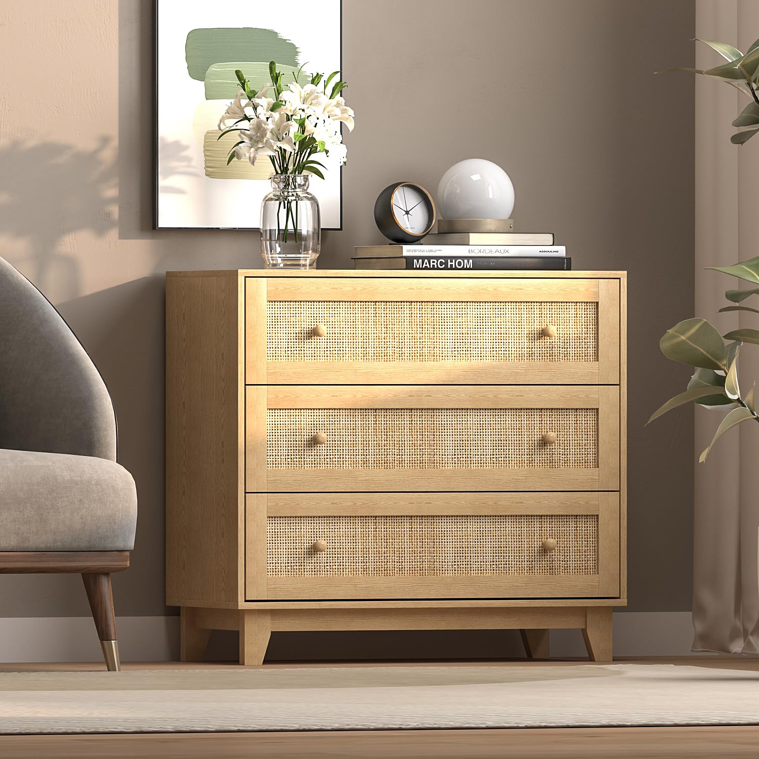 - Multi-Purpose: The naturl rattan dresser 3 drawer can be used as a makeup dresser, nightstand, dresser chest, bedside table, clothing dresser, living room storage cabinet, use it in various places such as bedroom, kitchen, living room.