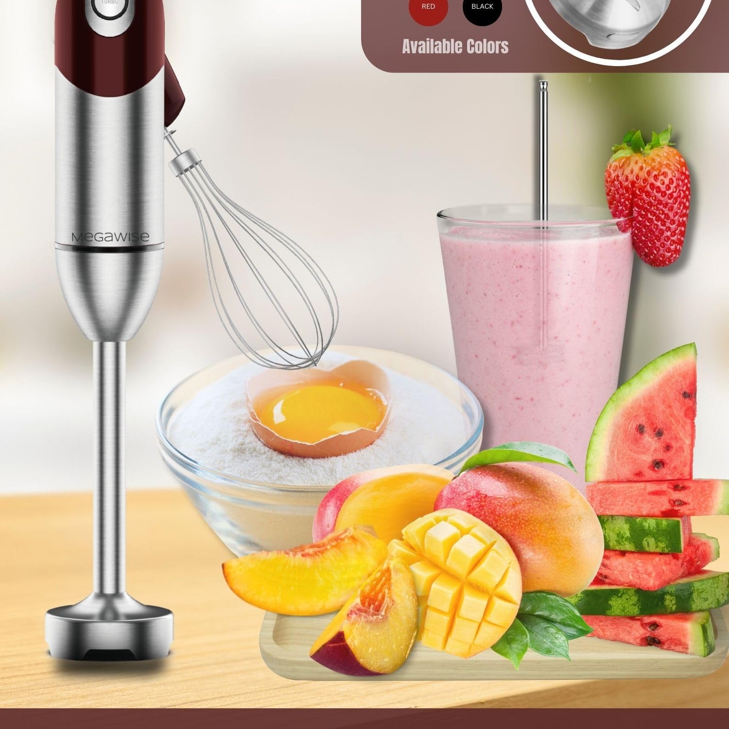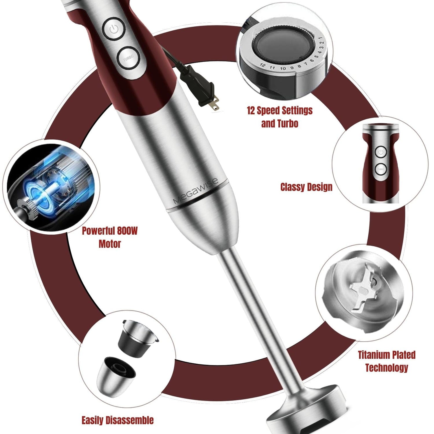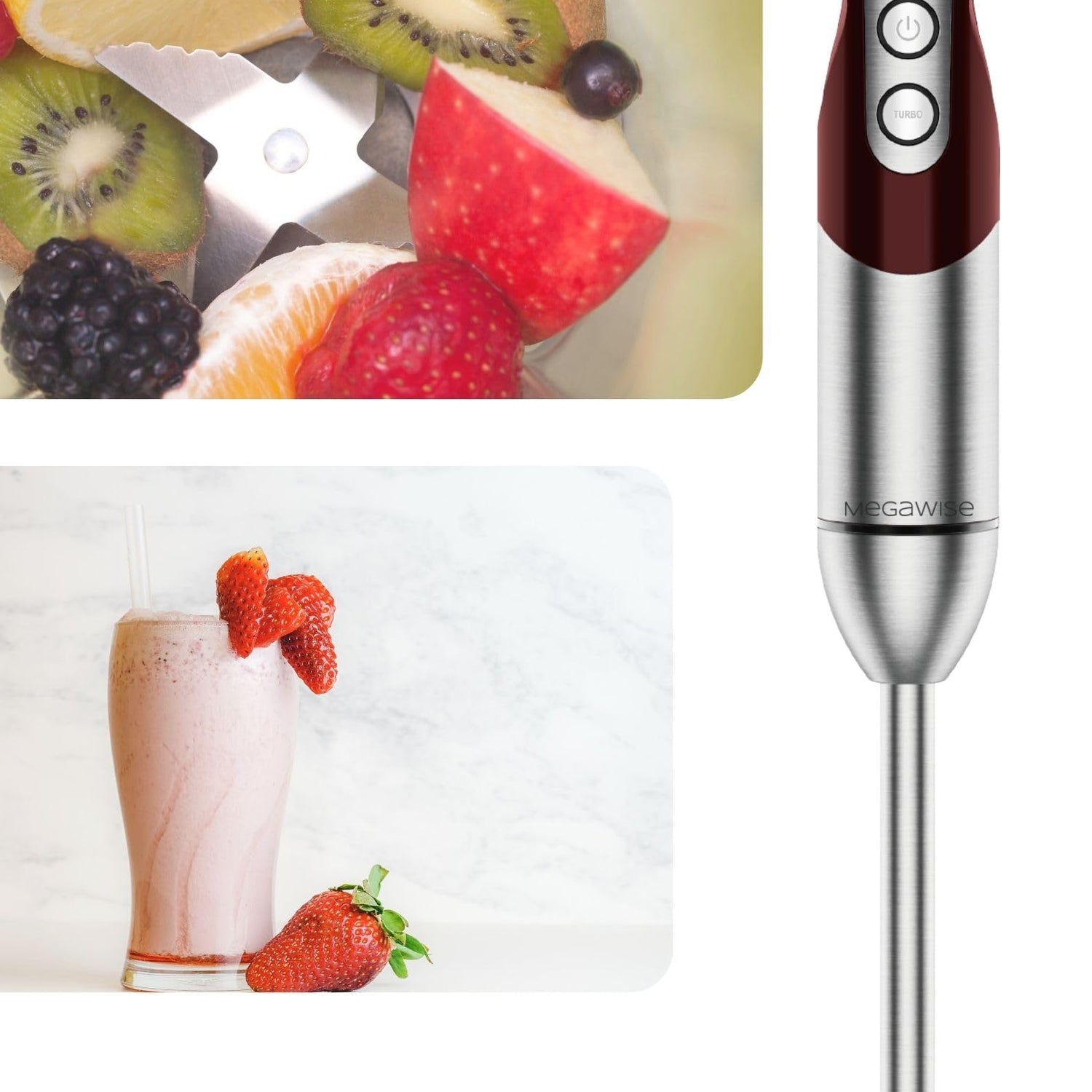 - 💞Powerful Full Copper Motor 💞 2023 updated MegaWise immersion blender has a pure copper DC motor with op power 1000W and rated 400W, more powerful and quieter than most other blenders on the market to make your food preparation process fast and easy.