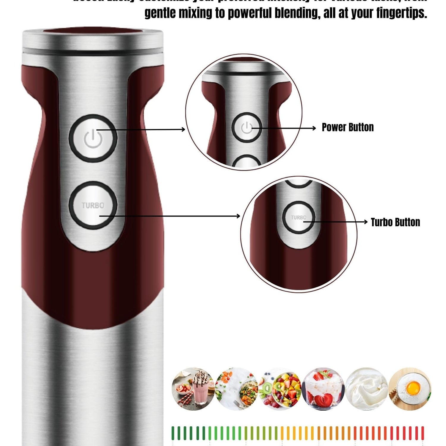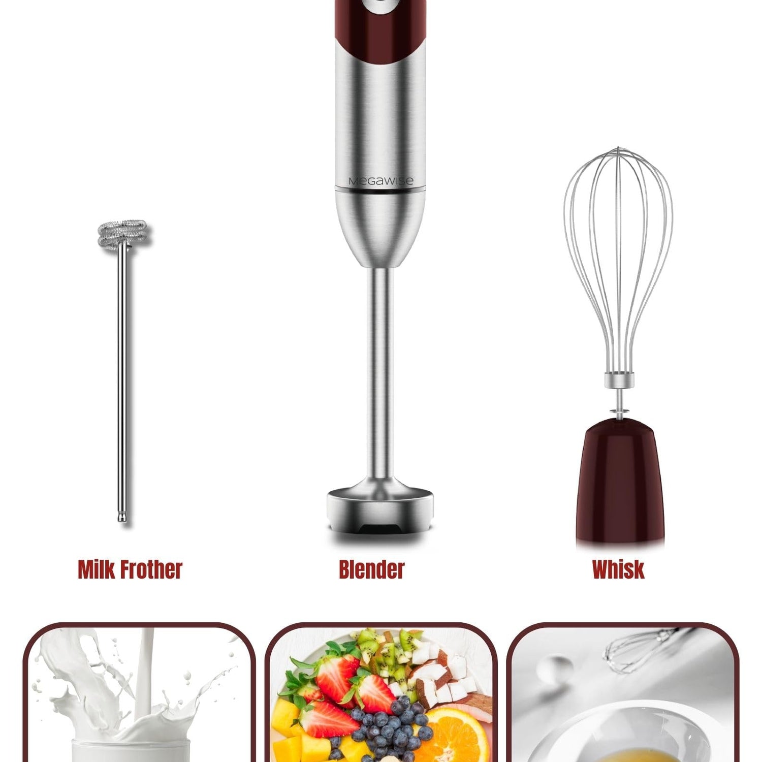 3- in-1 Immersion Hand blender, Powerful MOTOR & Stainless Steel Stick Blender, 4 Sharpe Blades with Whisk, Milk Frother Attachments