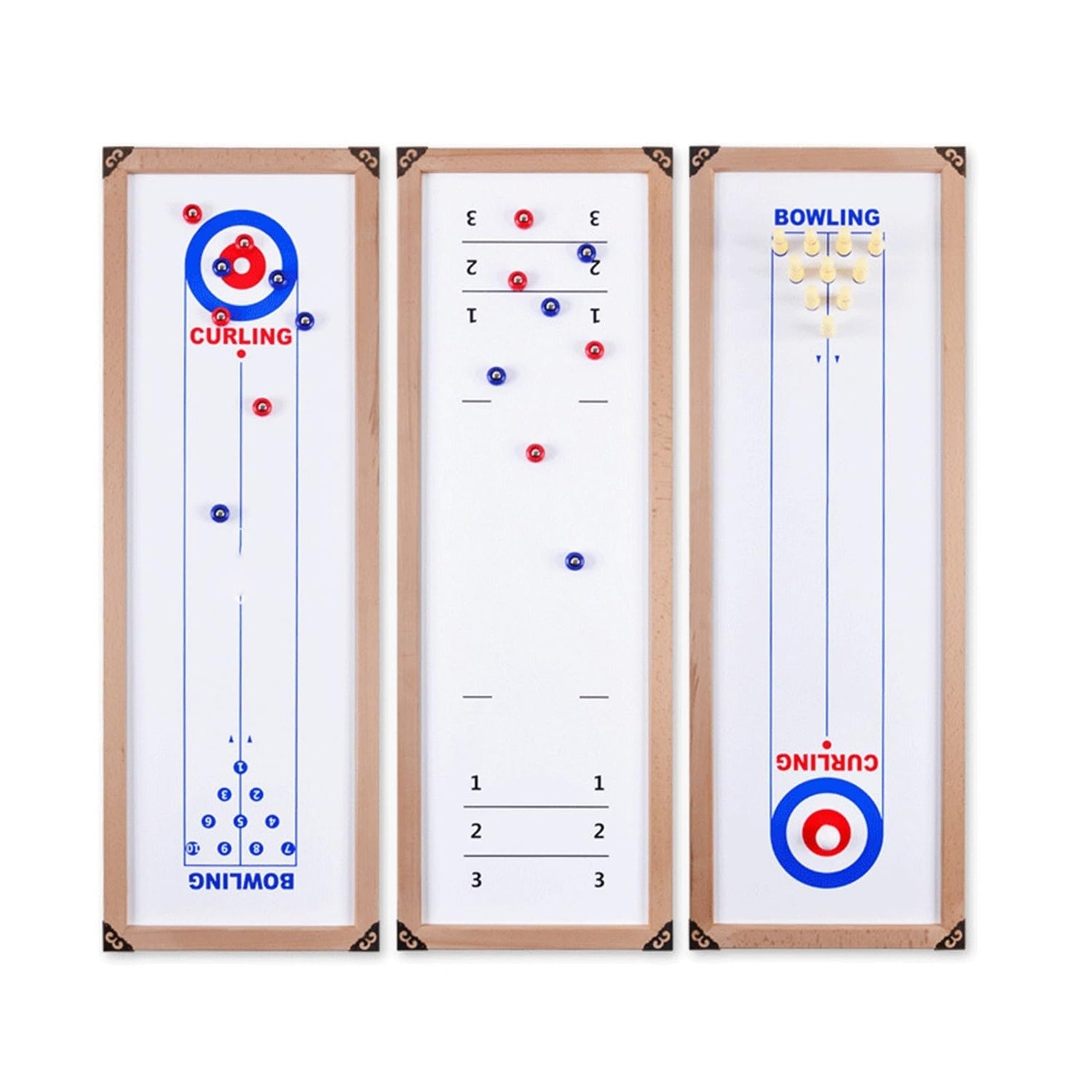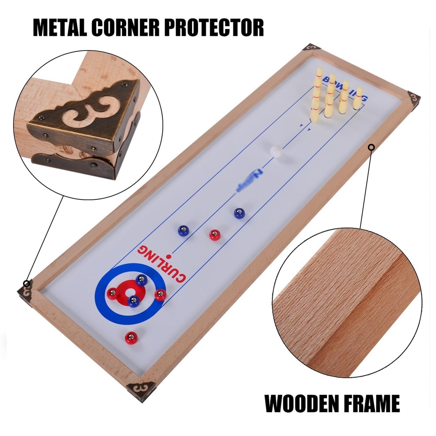 - 【3 in 1 Board Game】 - 3 in 1 game design, bowling and curling games on one side, shuffleboard table game on the other side - makes for a fun indoor activity for the whole family.