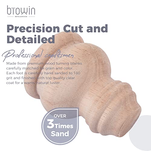 3 inch Mini Unfinished Wooden Bun Feet, Btowin 4Pcs Solid Wood Furniture Legs with Threaded 5/16'' Hanger Bolts & Mounting Plate & Screws for Sofa