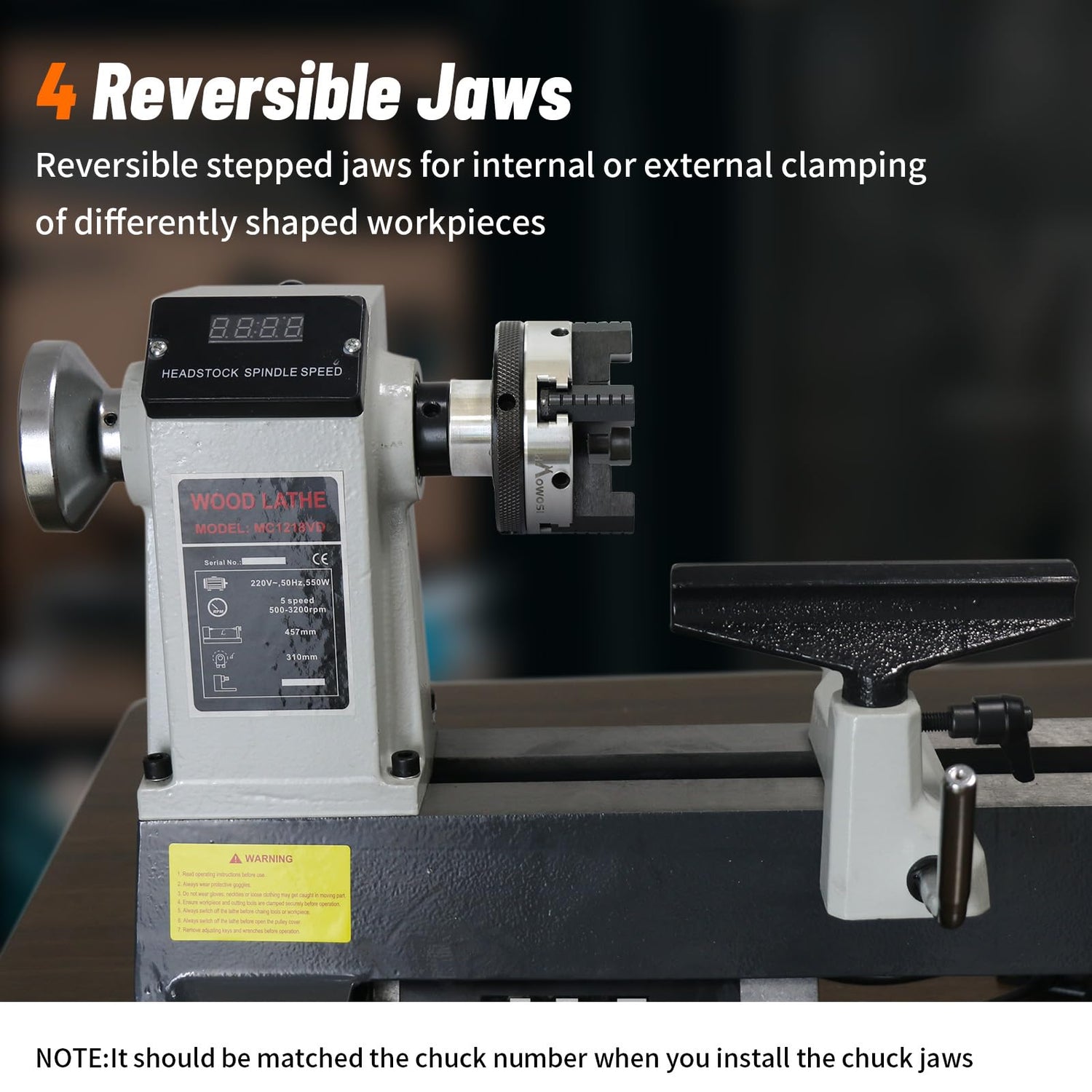 - Reversible Jaws Chuck: The mini lathe chuck features reversible stepped jaws that can securely hold internally or externally different shaped workpieces.