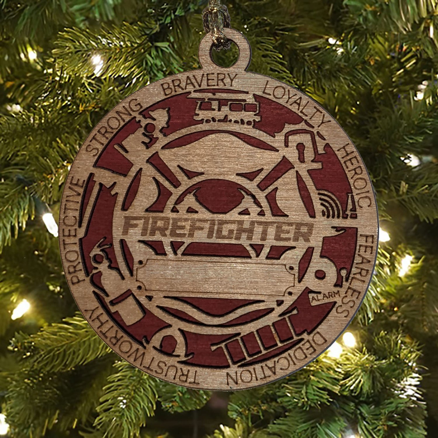 3" Laser-Cut Handcrafted Wooden Personalized Firefighter Christmas Ornament - Custom Fireman Holiday Decor with Solid Background