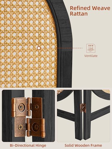 3 Panel Folding Room Divider, Hand-Woven Rattan Room Dividers and Folding Privacy Screens with Bi-Directional Hinge, Pre-Assembled Partition Room Dividers for Home Office Bedroom Restaurant, Black