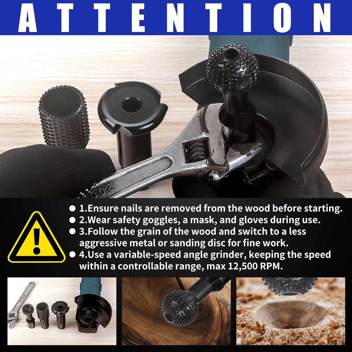 - 3-in-1 tool set: The Angle grinder attachments for precision grinding, a power carving tools for wood milling, and a grooving cutter for peeling and expanding holes. Perfect for shaping, hollowing, slotting and roughing out wood pieces with a hand held stump grinder, like as carving wooden bowls, spoons, tree faces and other wooden art.