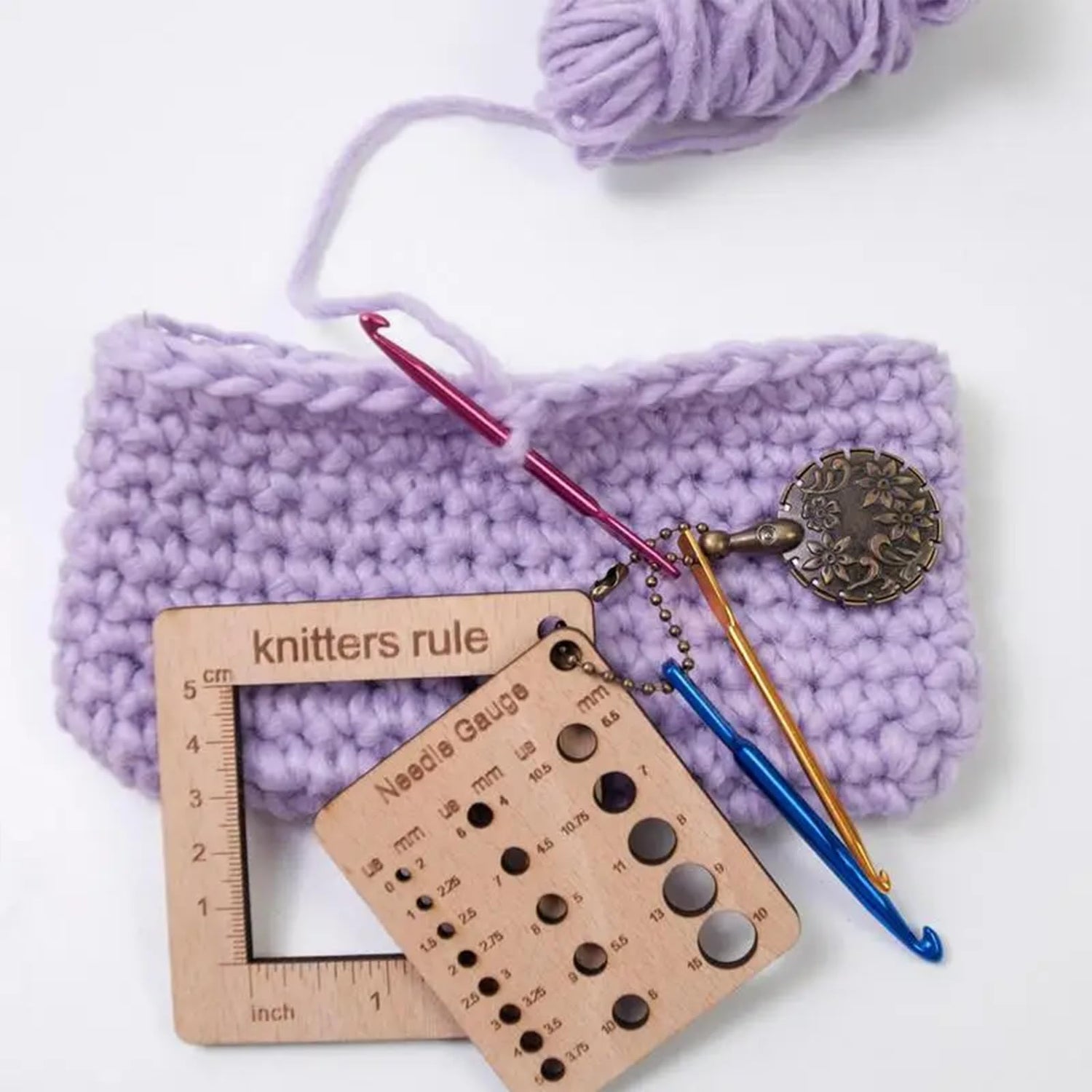 - Sewing Tool Kit: Package contains 4 pcs different tools: knitter ruler, wraps per inch tool, needle gauge and yarn cutter