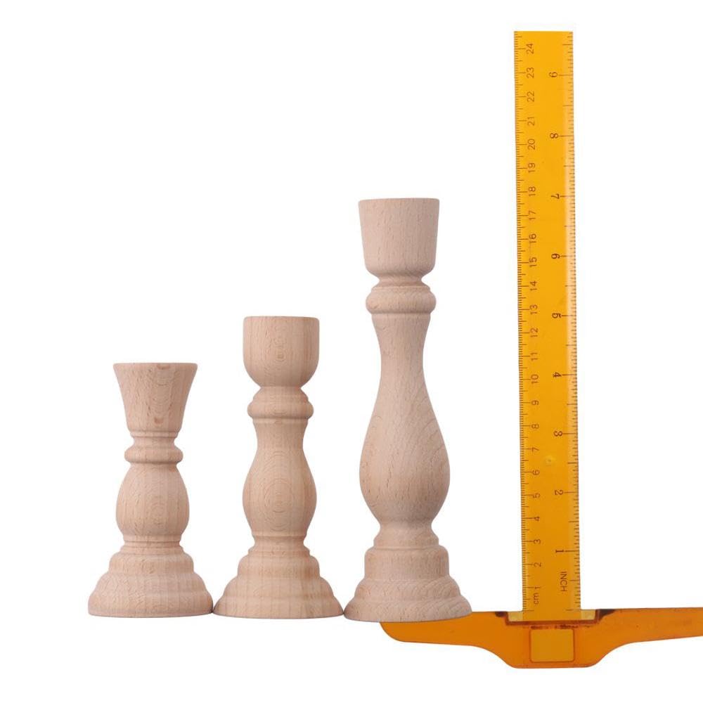 3 Pcs Wooden Candle Holders Wooden Farmhouse Candlesticks Unfinished Pillar Taper Candle Holders for DIY Spiral Taper Candle Home Decor