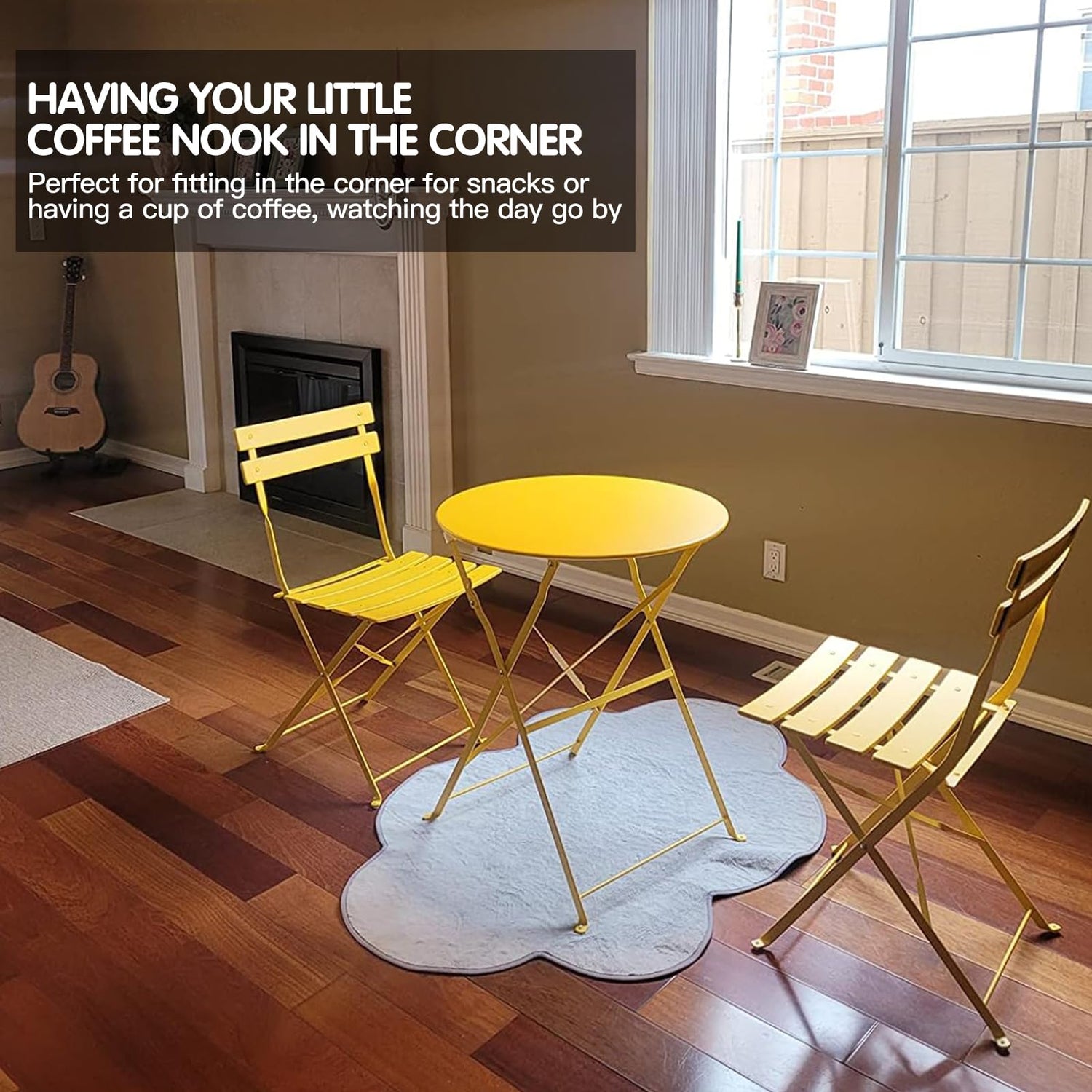 - 🍊CUTE SMALL BISTRO SET: yellow brightens up dreary day and add a pop of life to any small tight spaces, The metal construction is not only sturdy and durable but also gives the set an elegant look. It's a fantastic addition to any outdoor or indoor space