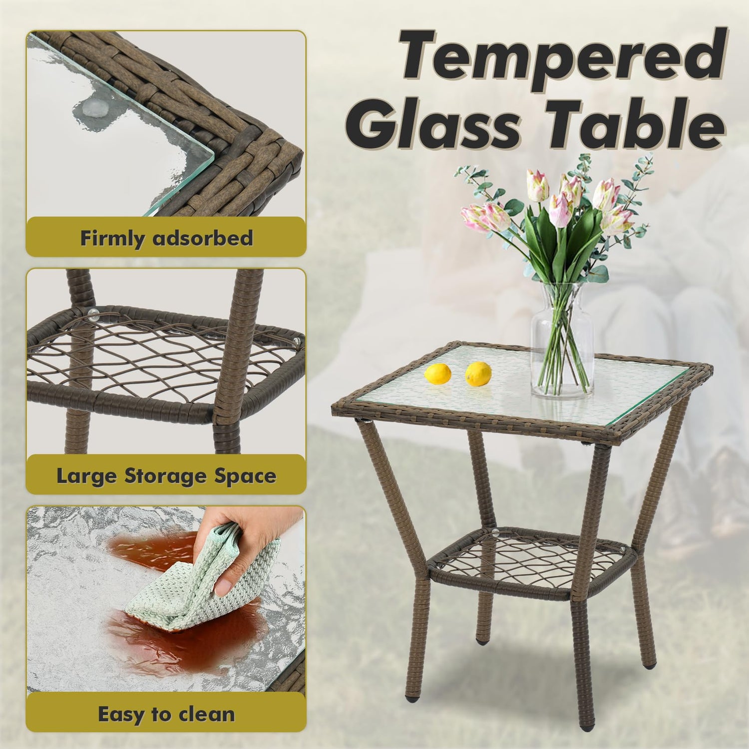 - Stylish and Versatile: This outdoor seating arrangement includes a chic coffee table with a tempered glass top, making it a stylish addition to any patio, balcony, or poolside space. The modern look enhances your porch furniture, providing a cozy spot for social gatherings or quiet evenings.