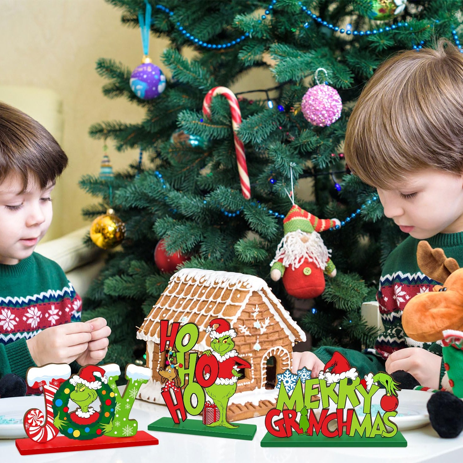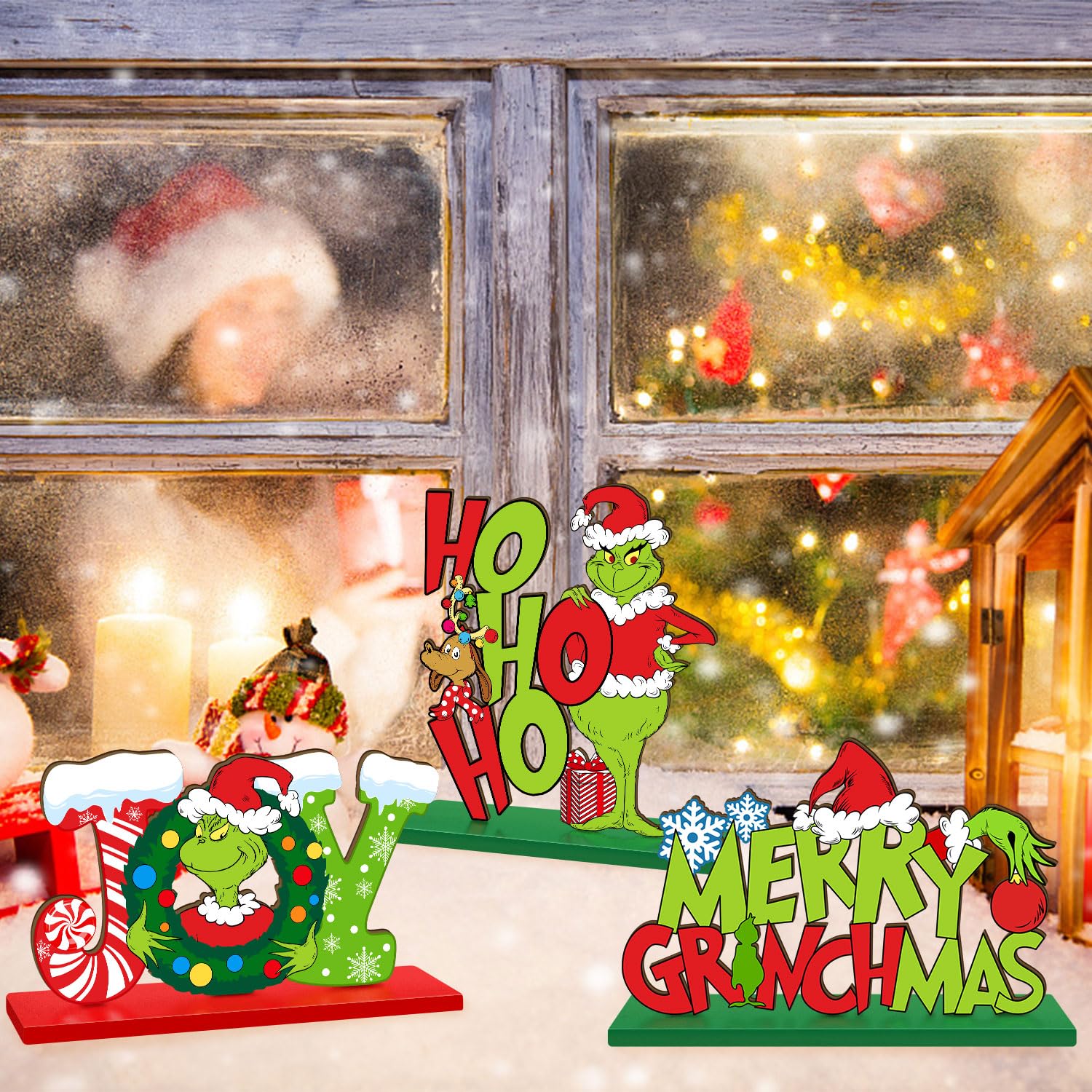 - 🎅Package Contents: You will receive 3 Christmas-themed signs and 3 wooden bases. The "Merry Grinchmas" text sign measures approximately 4.9x7.9 inches, the "JOY" sign is 4.5x7.9 inches, and the "HOHOHO" sign is 6.5x5.9 inches. An ample quantity and appropriate size to decorate your dining tables, windowsills, and fireplace, creating a delicate and charming holiday atmosphere.