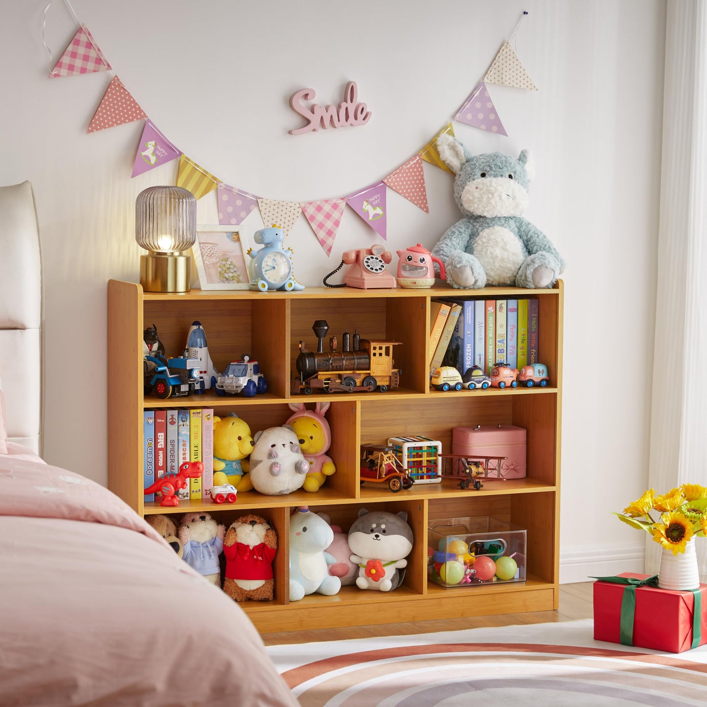 Details: 3-Tier Bookshelf, 8-Section Wooden Bookcase, Storage Organizer with Anti-Tilt Device, Modern Storage Display Cabinet for Living Room, Classroom, Kid’s Room