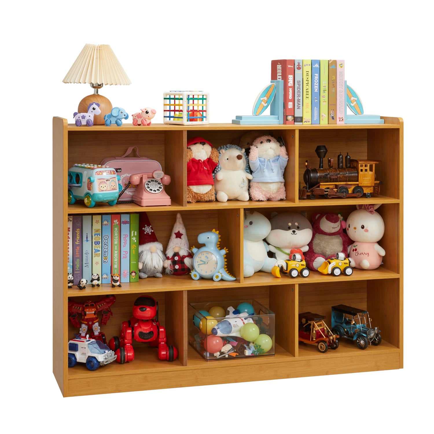 3-Tier Bookshelf, 8-Section Wooden Bookcase, Storage Organizer with Anti-Tilt Device, Modern Storage Display Cabinet for Living Room, Classroom, Kid’s Room (Natural)