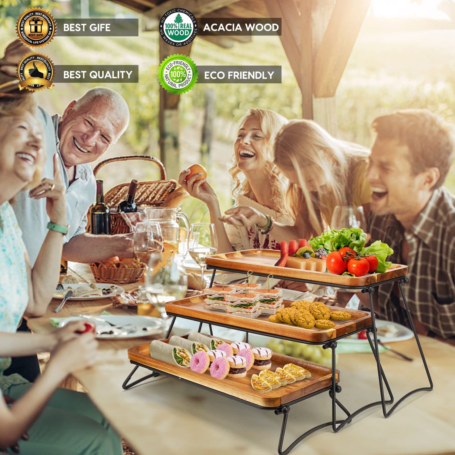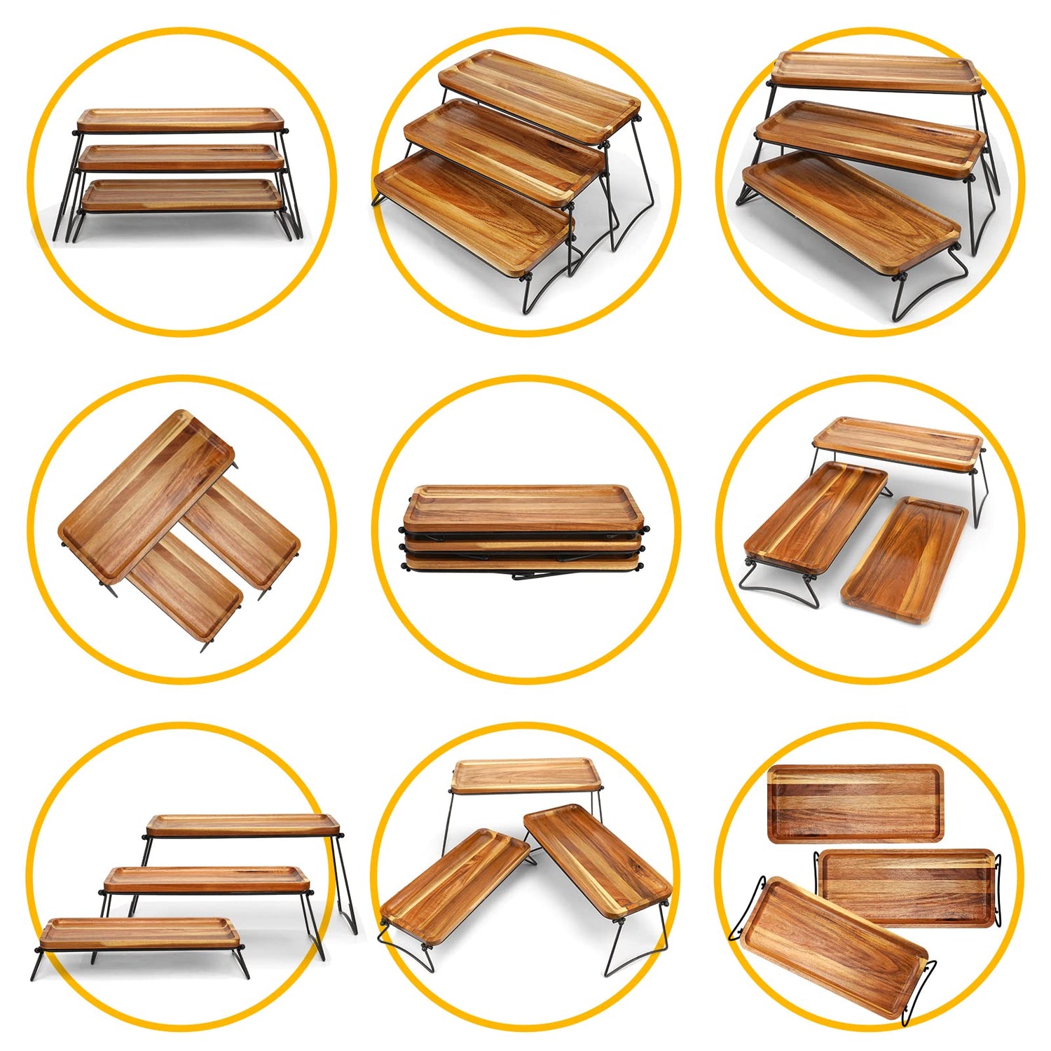 - [WHY IS UNIQUE] - Elevated level wooden tray decor is beautiful for any occasion and ideal daily use, put chartucherie serving board on metal rack is perfect for holiday entertaining, 3 tier serving tray is not only antique addition to platters and trays, but also attractive way to be a individual serving trays to serve charcuterie, cheese,appetizer, snack, pasty, cracker, cookie, candy, sandwiches, butter, meat....ect