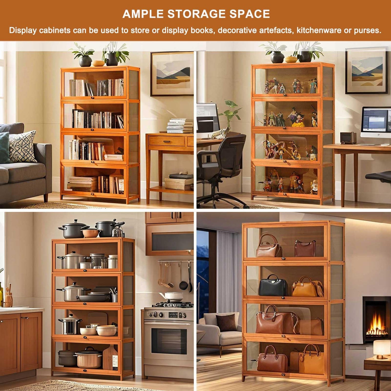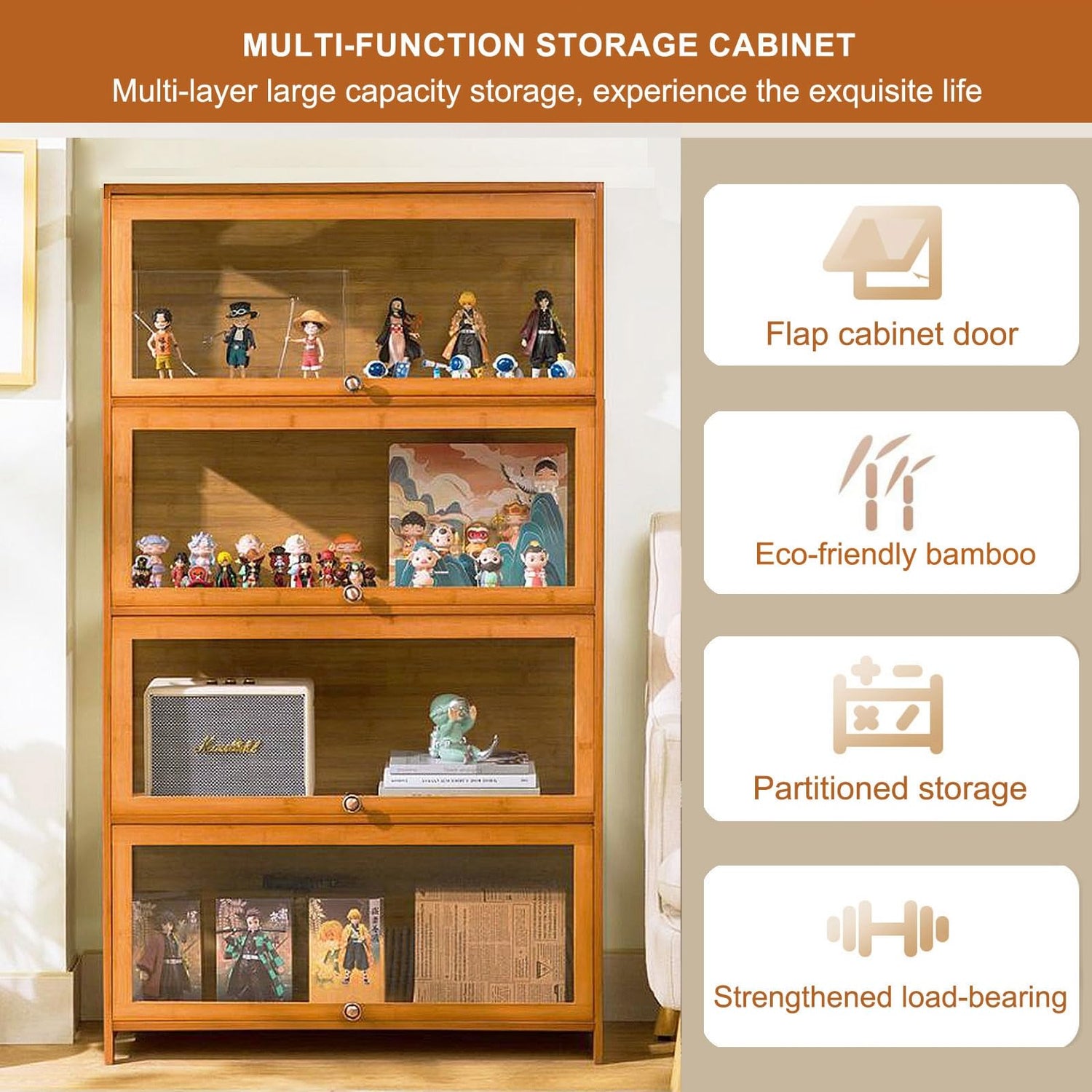 - [MULTIFUNCTIONAL USES] - Bamboo storage cabinet is an excellent choice for home storage with its unique charm. It is more than just an ordinary cabinet, it is versatile beyond imagination.Display cabinet with all the necessary parts, hardware and detailed instructions, this display shelves for collectibles is easy to assemble.