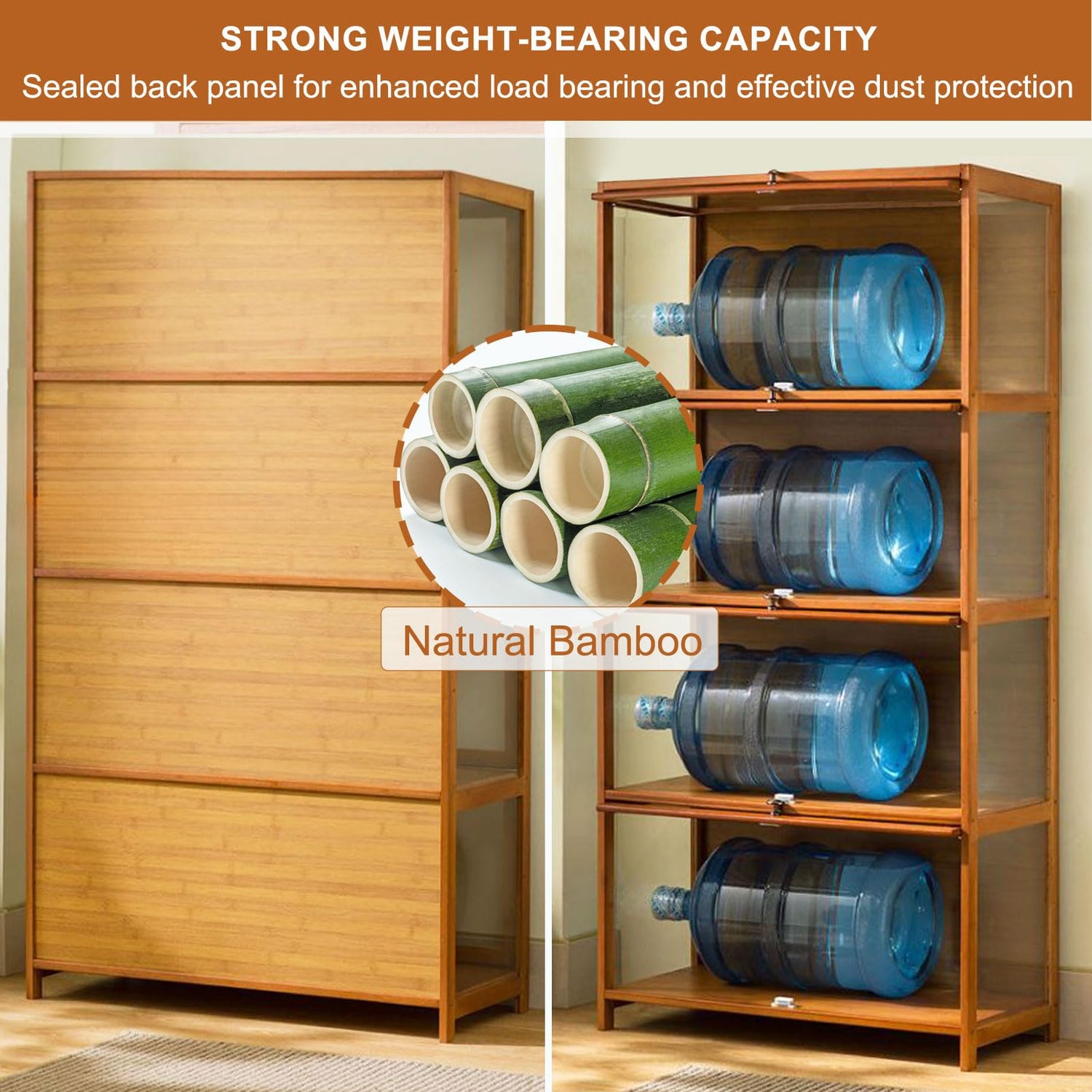 - [CONVENIENT CABINET] - It is not afraid of the humidity and smouldering fire in the kitchen. Bamboo cabinet with excellent moisture resistance, pots and pans, bottles and cans are well organised. In the busy time of cooking, reach out to accurately find the required kitchenware, so that the birth of delicious more relaxed and unhurried, for the kitchen life to add a touch of natural spirit.