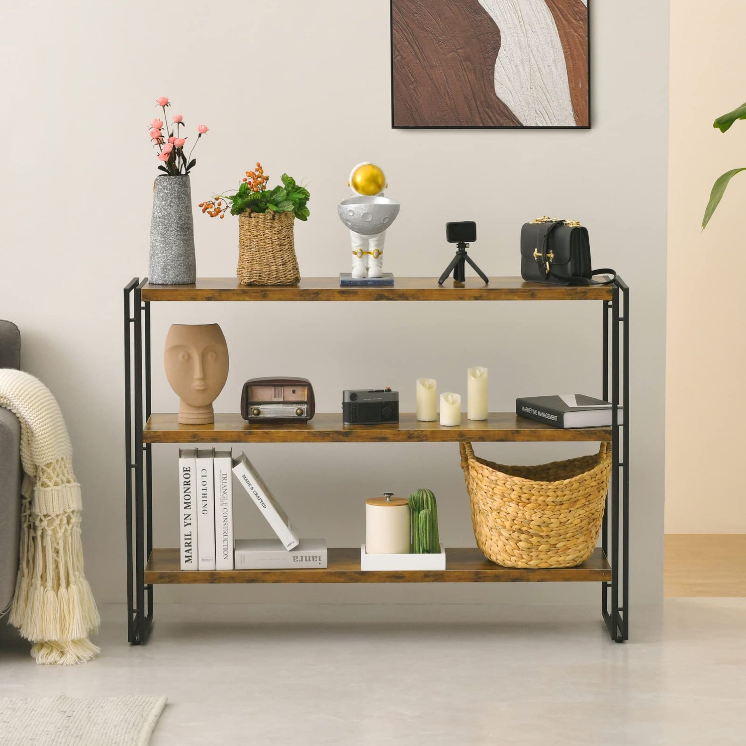 Rustic Wood and Metal 3-Tier Industrial Bookshelf – Perfect for Home Office, Bedroom, Kitchen, or Bathroom (47in)