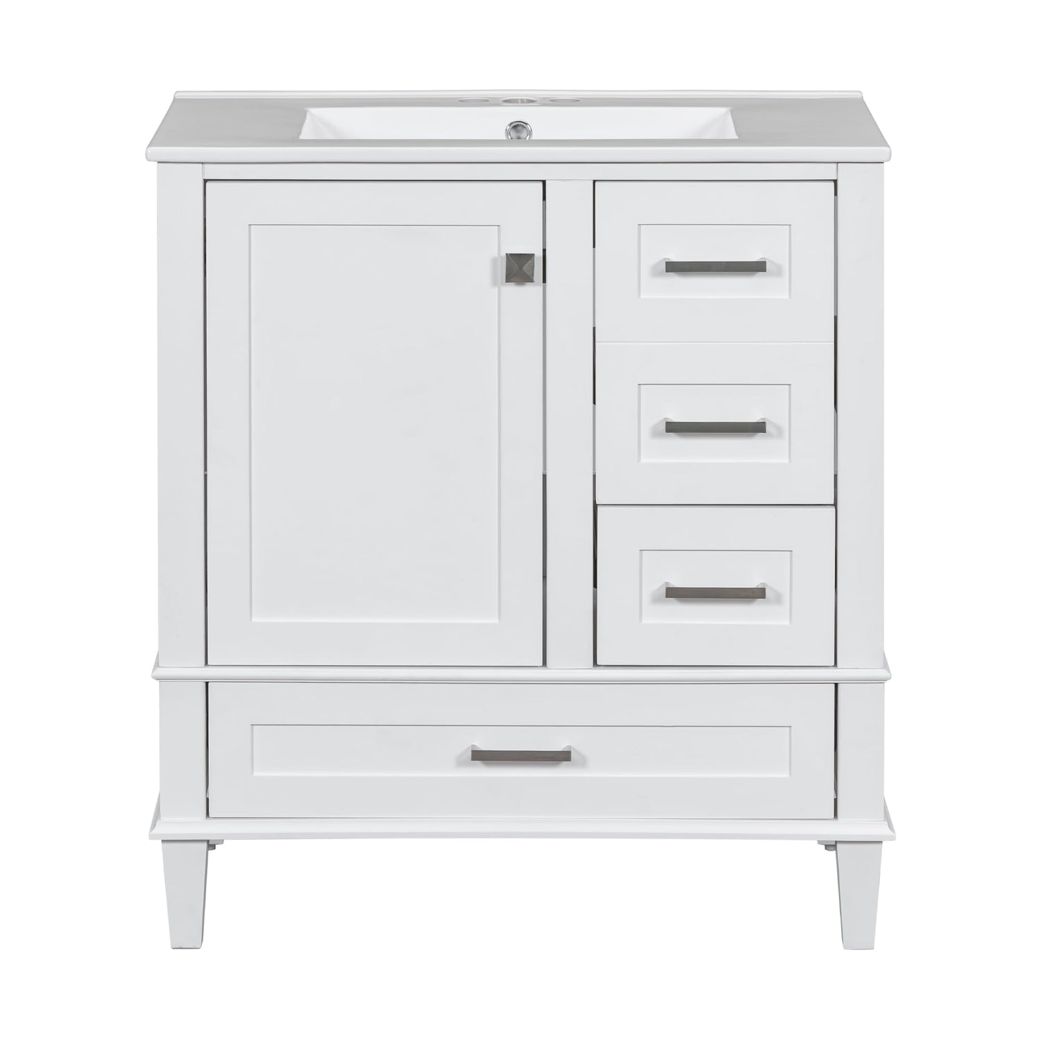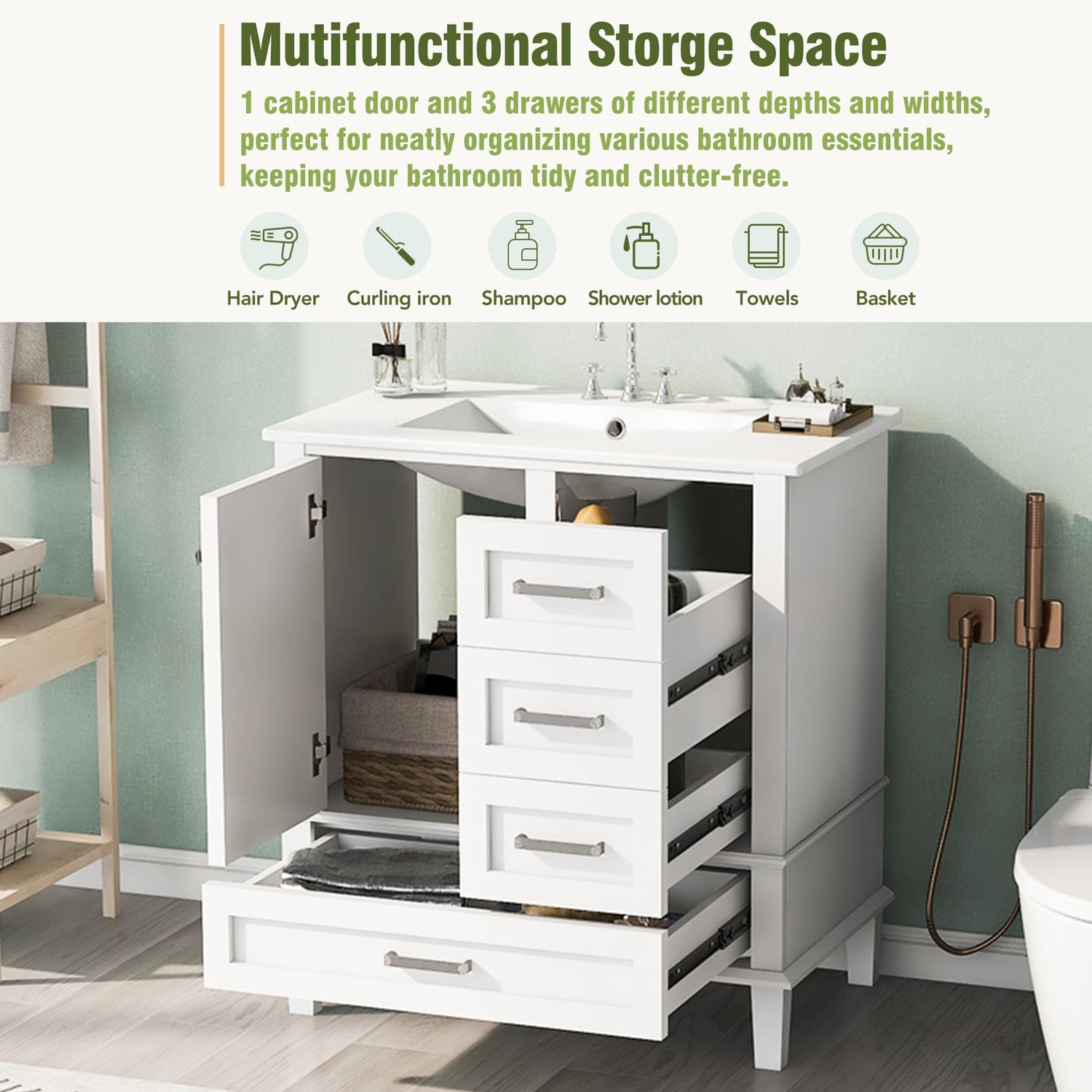 30" Bathroom Vanity with Sink Combo Set, Modern Storage Cabinet with a Soft Closing Door and 3 Drawers, Solid Wood Frame