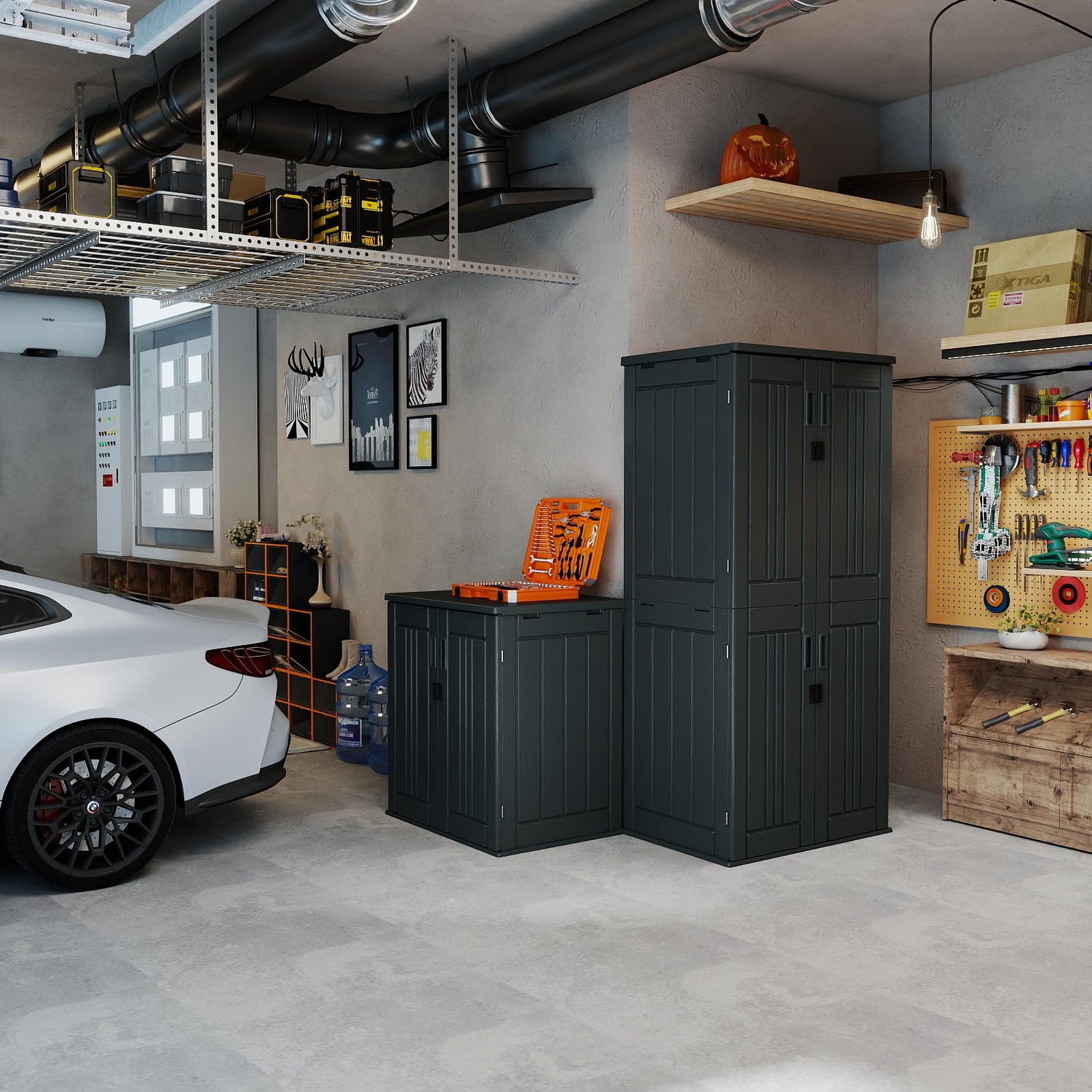 - High-Density Polyethylene Construction: Crafted from durable high-density polyethylene resin plastic, this storage cabinet offers exceptional waterproofing, ensuring that your belongings remain dry and protected from the elements.