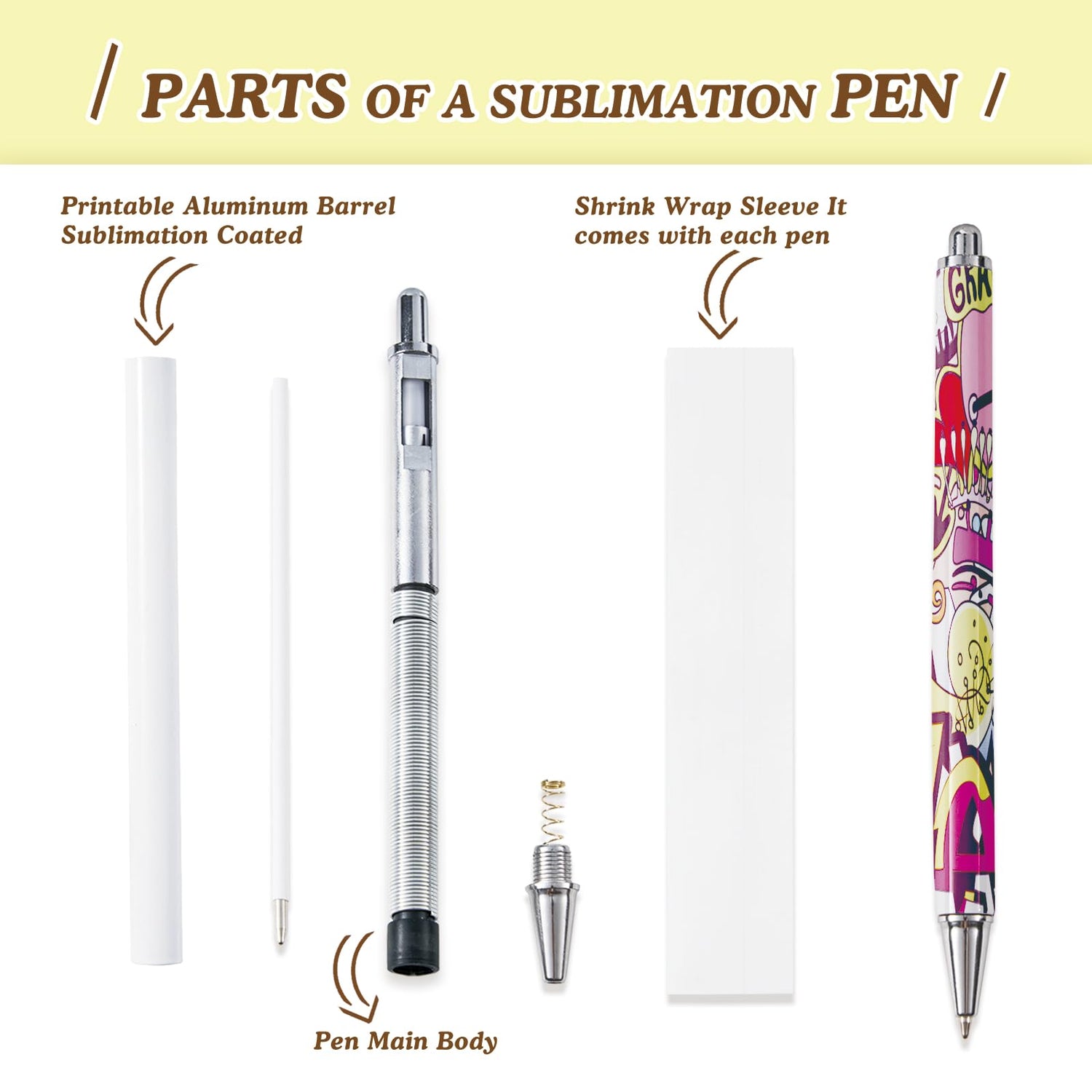 - 【Package Includes】You will receive 30 pcs Sublimation Pens and 30 pcs Shrink Wraps, plenty of quantity for you to unleash your imagination and create unique personalised pens for yourself, classmates, friends and family