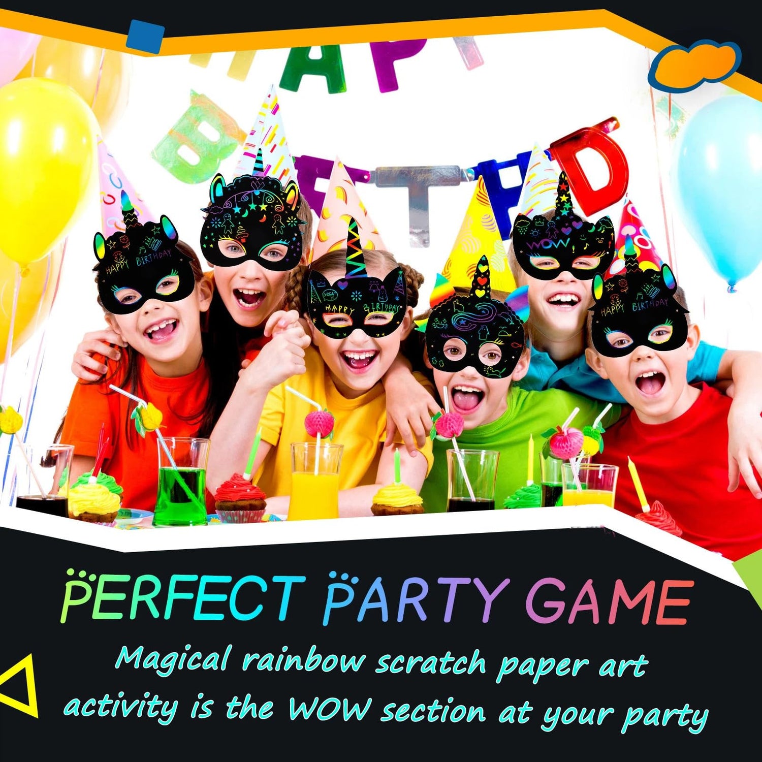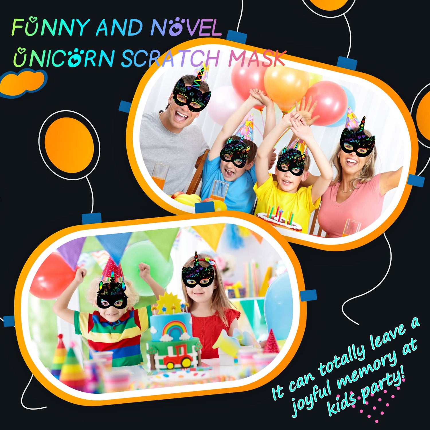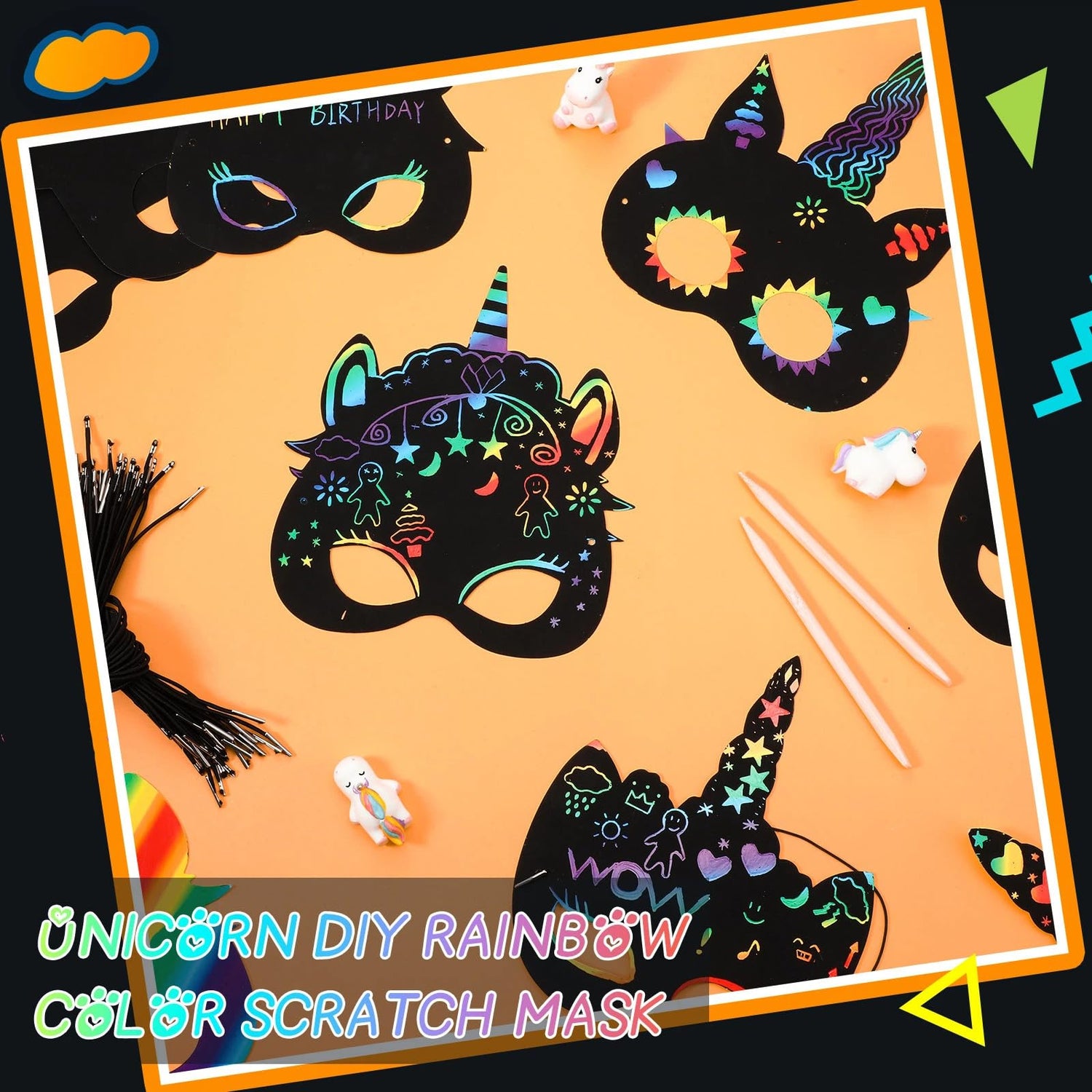 The unicorn scratch paper masks can be adorable party game props. And also, you can use these unicorn party masks as unicorn party favors for birthday party, festival event or other activities.