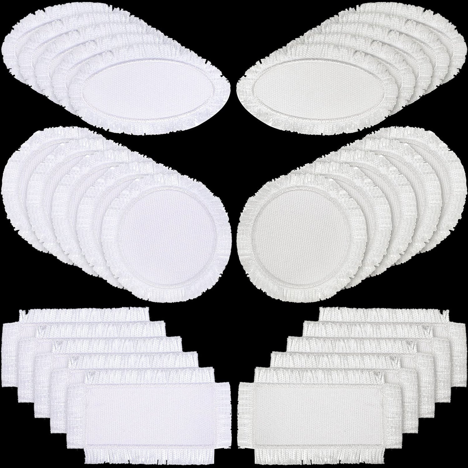 30 Pieces Sublimation Patches Fabric Iron on Blank Patches 3 Shapes Repair Patches Sublimation Blank Hat Patch for DIY Crafts, Caps Clothes Shoes Bags Backpacks Uniforms (Beige, White)