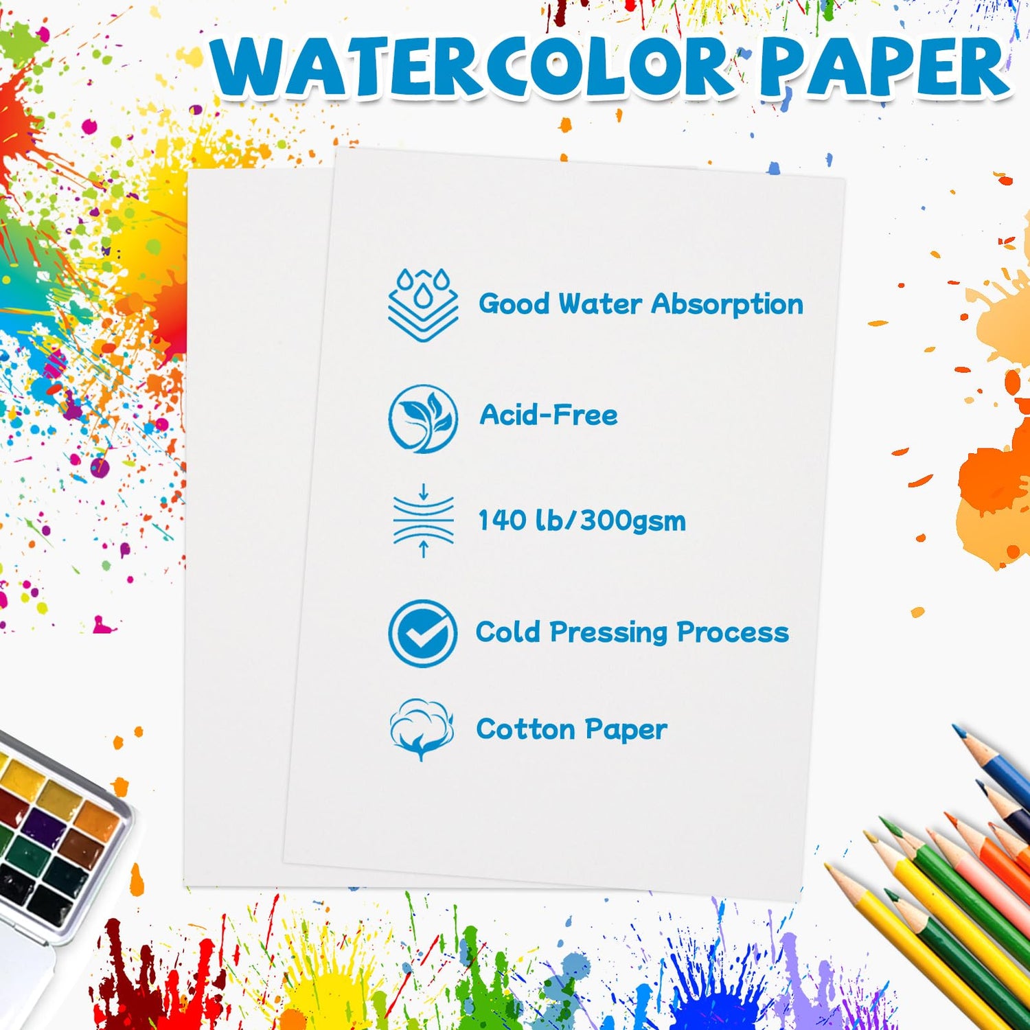 - 【Cotton Watercolor Paper】Our cold press watercolor paper is made of cotton, with good water absorption, not easy to pilling, strong texture, durable, Cotton watercolor paper can allow the pigment to absorb and distribute evenly, reduce the warping and bending of the paper, and make your The painting is more perfect.