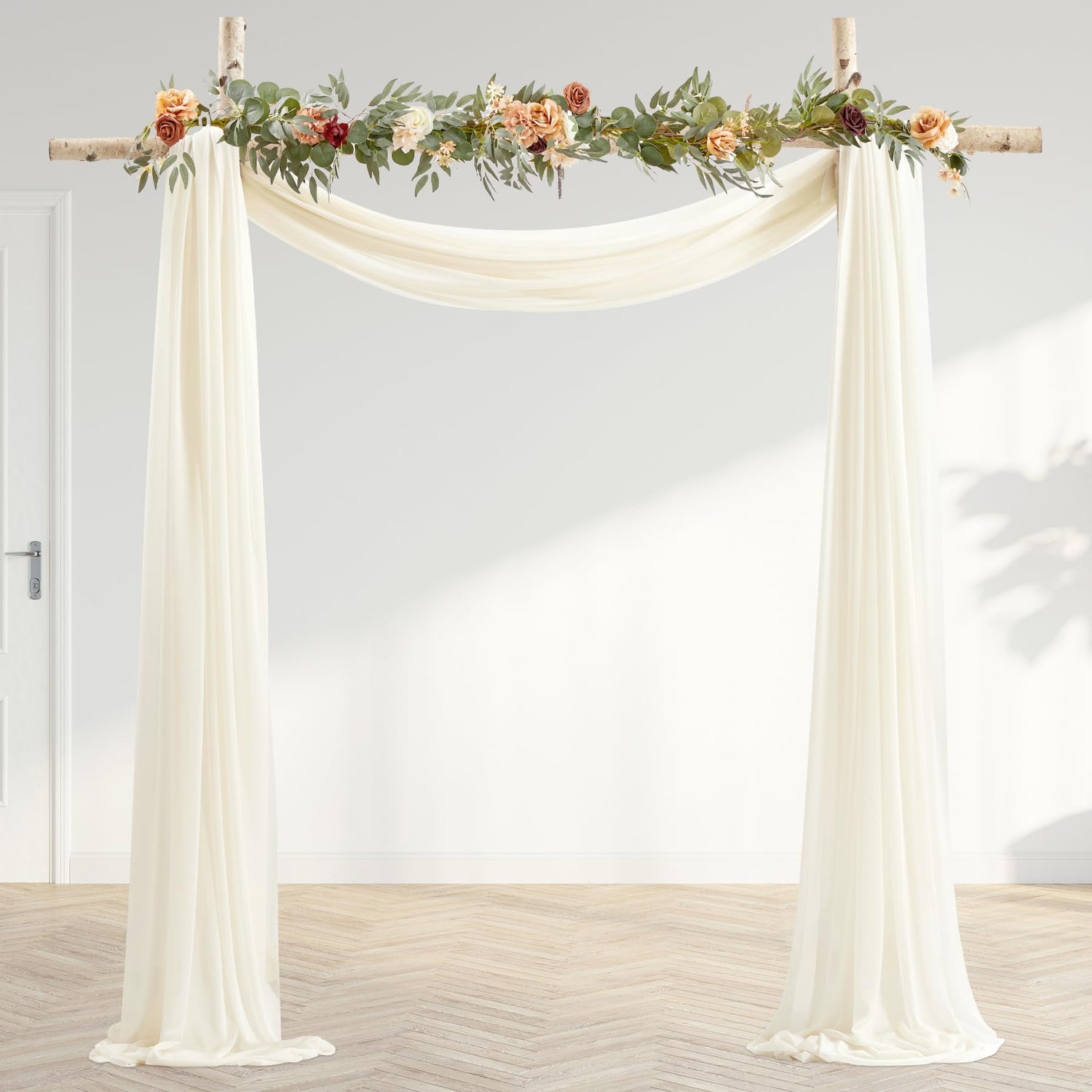 - Wedding Arch Draping Fabric Package: Package including 1 panel ivory wedding arch drapes, each panel is 30" wide and 20ft long.