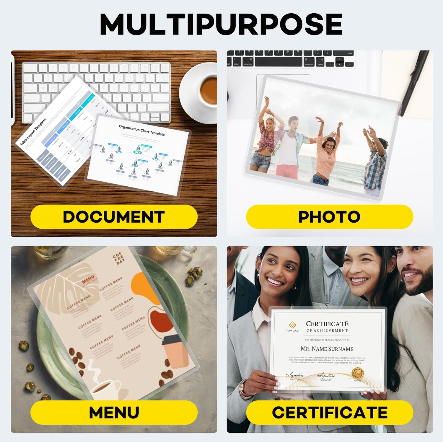 - Premium Material: Crystal clear, glossy sheen, sturdy and Premium material. Laceration resistant, double coating, anti-stain, sturdy and waterproof, protect your document from scratching
