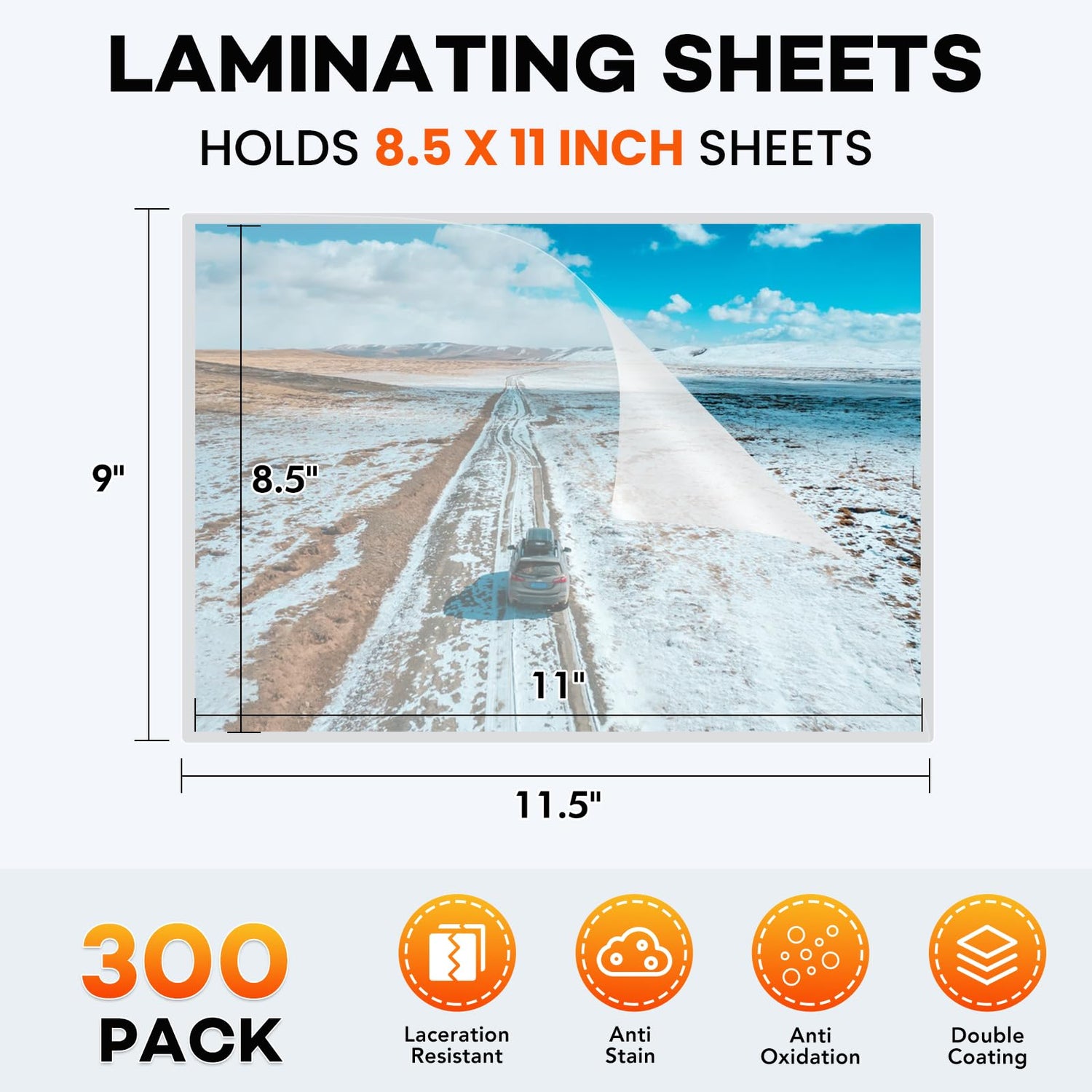 - Laminating Pouches Dimensions: 300PACK , 9" x 11.5", thickness: 3 Mil, holds 8.5 x 11 inch sheets.