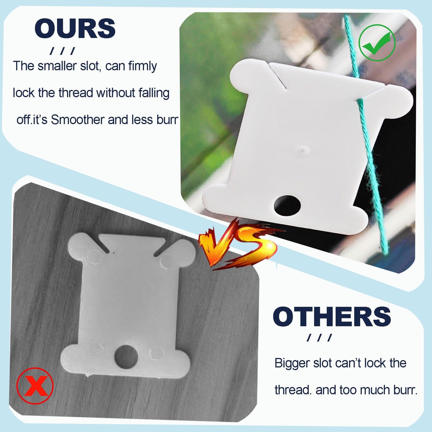 - Reasons worth buying: The smaller slot, can firmly lock the thread without falling off. It's smoother and less burr. With high quality plastic, very durable, you can use it again and again.