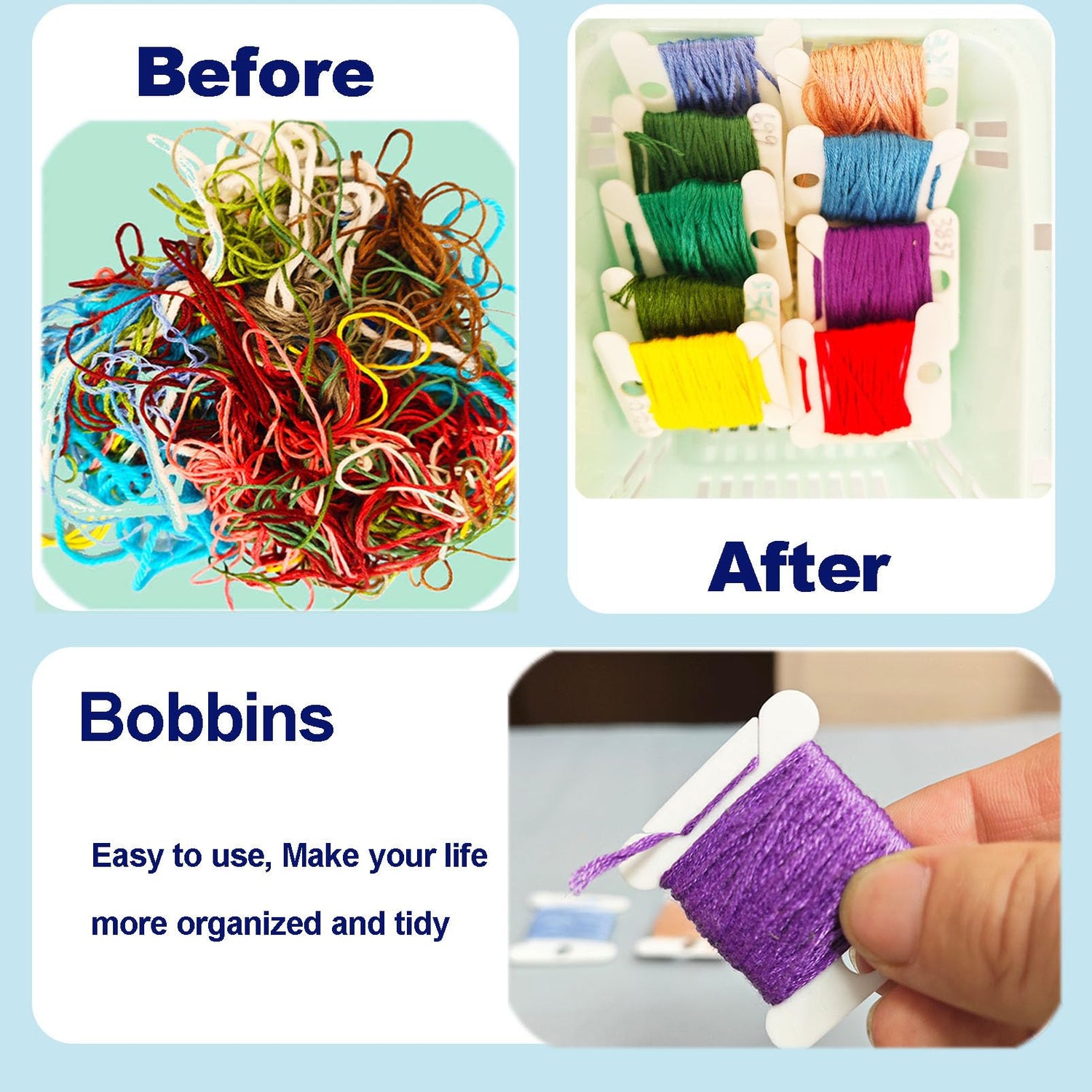 - Advantages of the product: 1. The product has been polished and no longer has rough edges, does not snag your floss; 2. Narrow thread holder, it's easy to hold thread properly; 3. Made of high quality plastic, it's more durable and useful