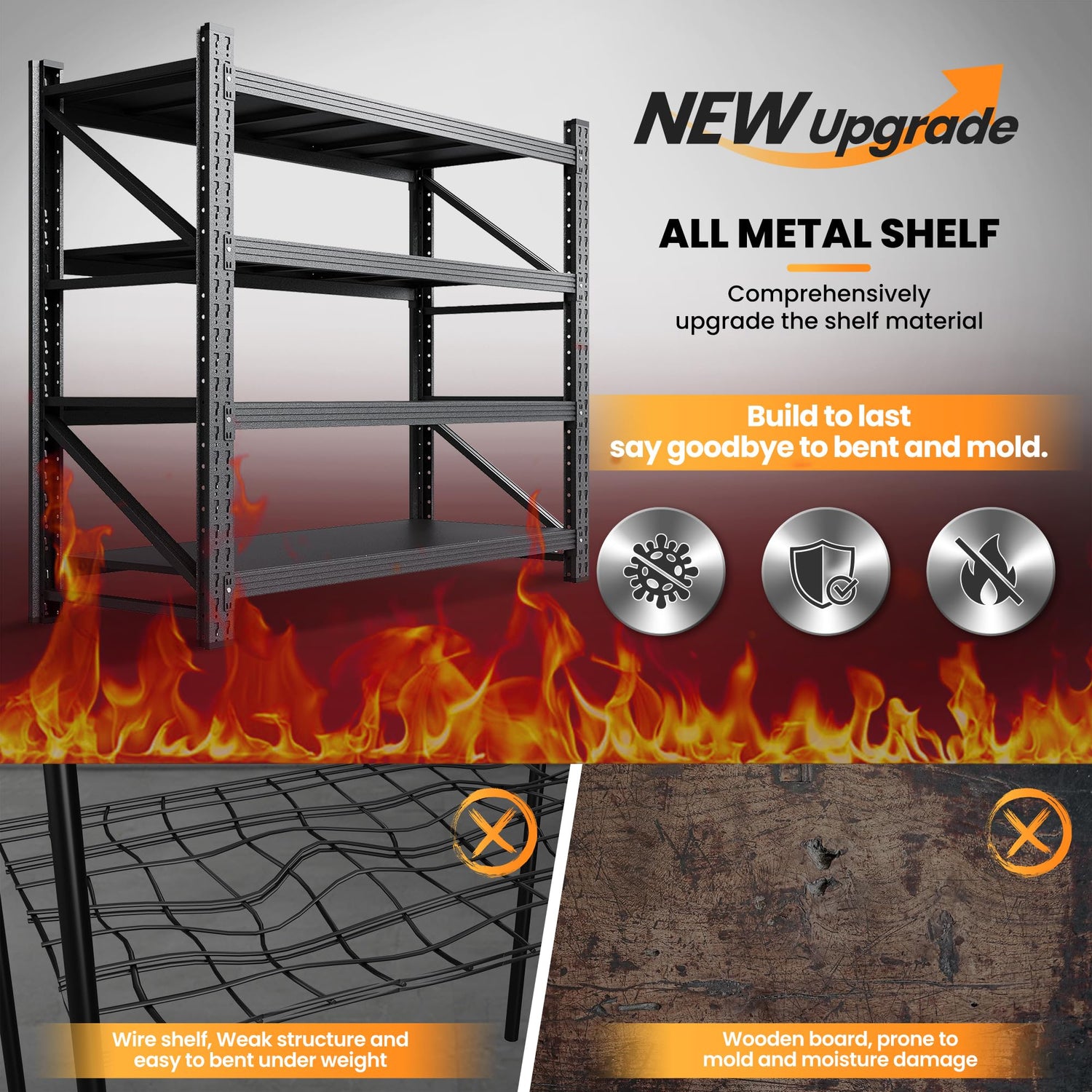 - 【Triple Protection Function】➤The metal shelves is made from high-strength cold-rolled steel and features an advanced powder coating. This combination ensures durability, rust resistance, and anti-corrosion properties. Additionally, it enhances scratch and wear resistance, maintaining the garage shelf's integrity and appearance over time. Finally, the protective foot pad prevents scratches on your floor when moving the steel storage racks.