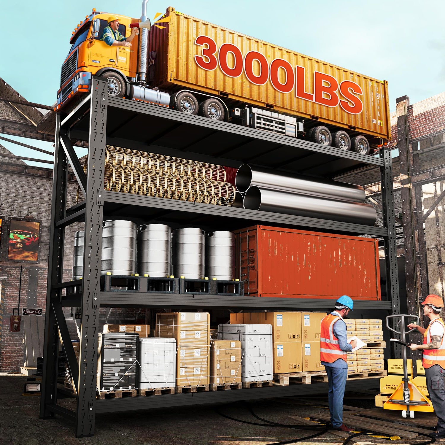 - 【Real Heavy Duty All Metal Garage Shelving】➤The heavy-duty metal shelving unit features an integrated vertical design with thicker, wider columns and beams for enhanced strength and load capacity. Reinforced beams support heavy loads reliably, even with frequent use. Beneath each layer of the robust metal frame, there are 5 sturdy ribs that enable the storage shelves to effortlessly support a weight capacity of 3,000 pounds.