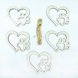 - DELICATE DESIGN:Wooden blank heart dog paw design hanging ornaments, with a hole and rope, can be used for hanging decoration.