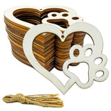 30pcs Dog Paw Heart Wood DIY Crafts Cutouts Wooden Cat Claw Heart Shaped Hanging Ornaments for DIY Projects Dog Pets Themed Party Decorations