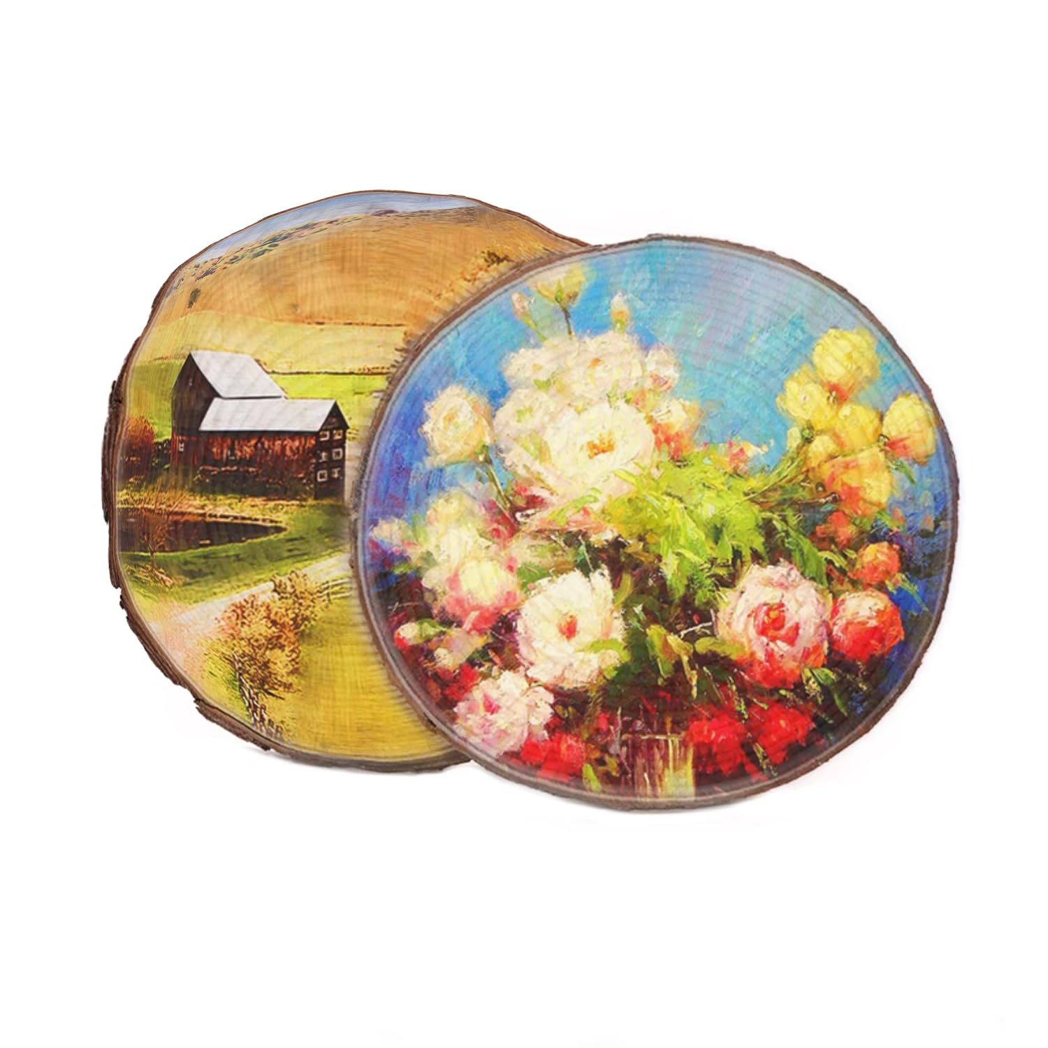 - Natural Pine Wood: Each wooden circle is crafted from natural pine wood, showcasing unique grain patterns while retaining the bark, adding rustic charm. Some bark may partially peel off, highlighting natural characteristics.