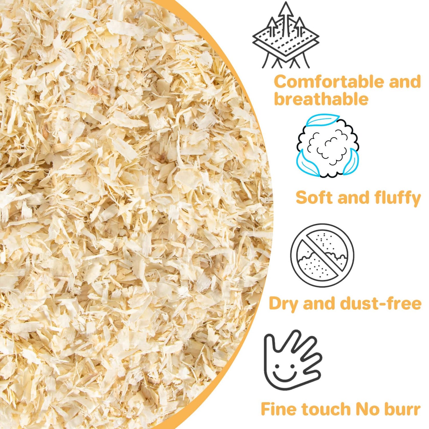 - 🐤EASY TO CLEAN UP: The shavings are easy to clean up and can decompose, which is very friendly to the environment. Using poplar wood shavings as chicken coop bedding, you can not worry too much about how to dispose of it after use, it is an ecological product that is convenient to use.