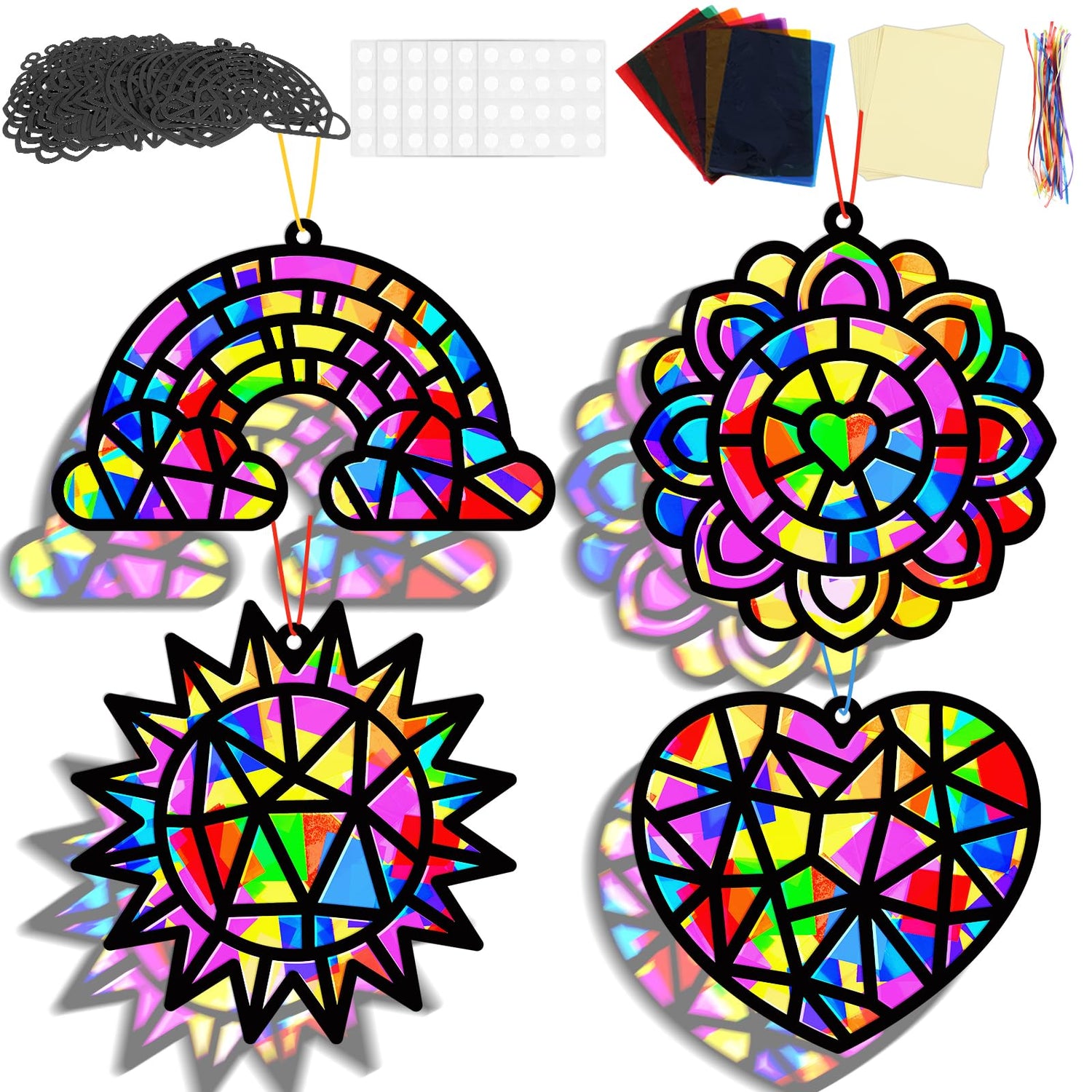 - 【Versatile and Fun】These summery glass paper crafts come to life with vibrant patterns and semi-transparent glass paper. Use them as window art decorations or hang them as part of a wind chime. Adorn your rooms, mirrors, windowsills, or use them as tree decorations. Perfect for festival decorations, classroom activities, and as birthday gifts or rewards. The sunlight illuminating the children's masterpieces inspires their creativity.