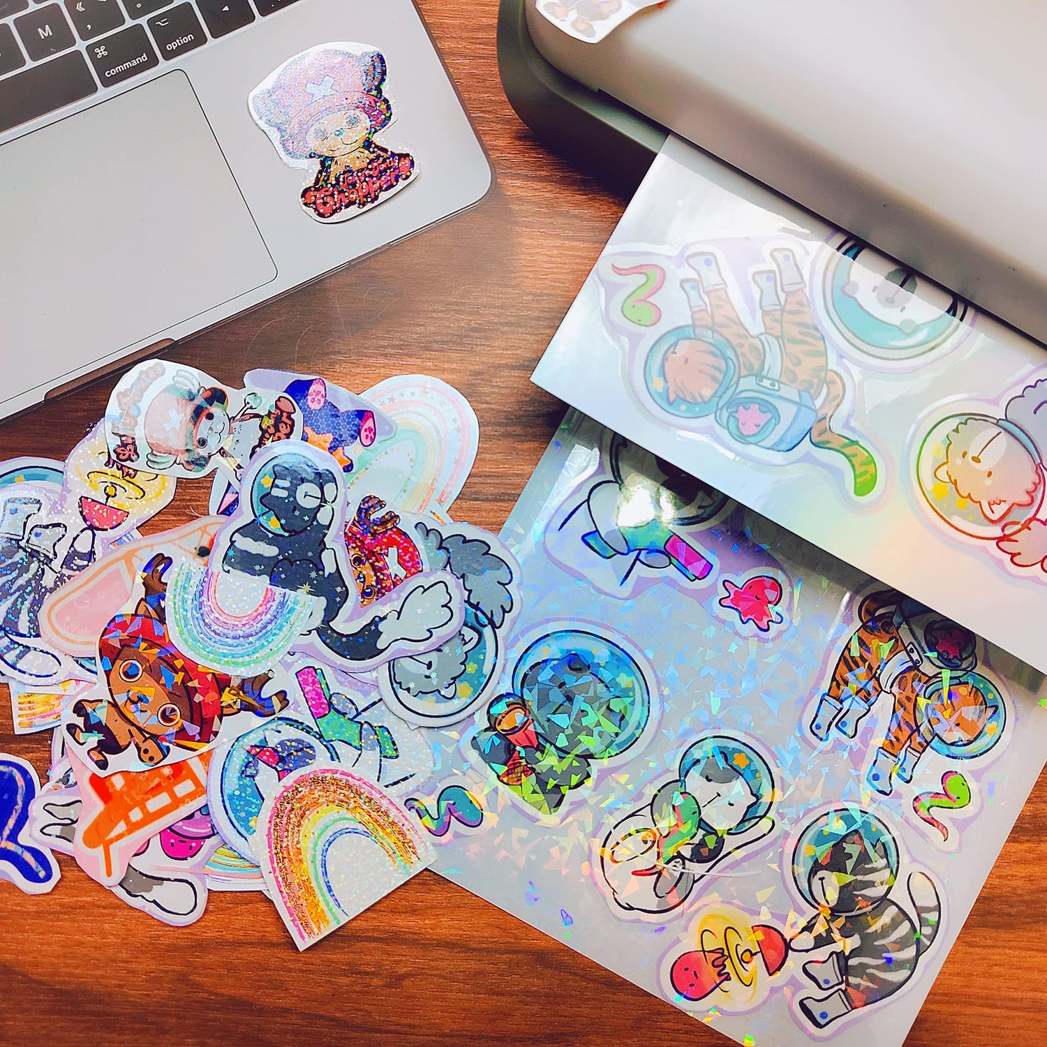 - Self adhesive stickers: These are A4 holographic sticker paper can be peeled off easily without leaving sticky residues, and they are also adhesive enough to stick on the smooth surfaces, pretty luminous colours that appear to change at different angles.