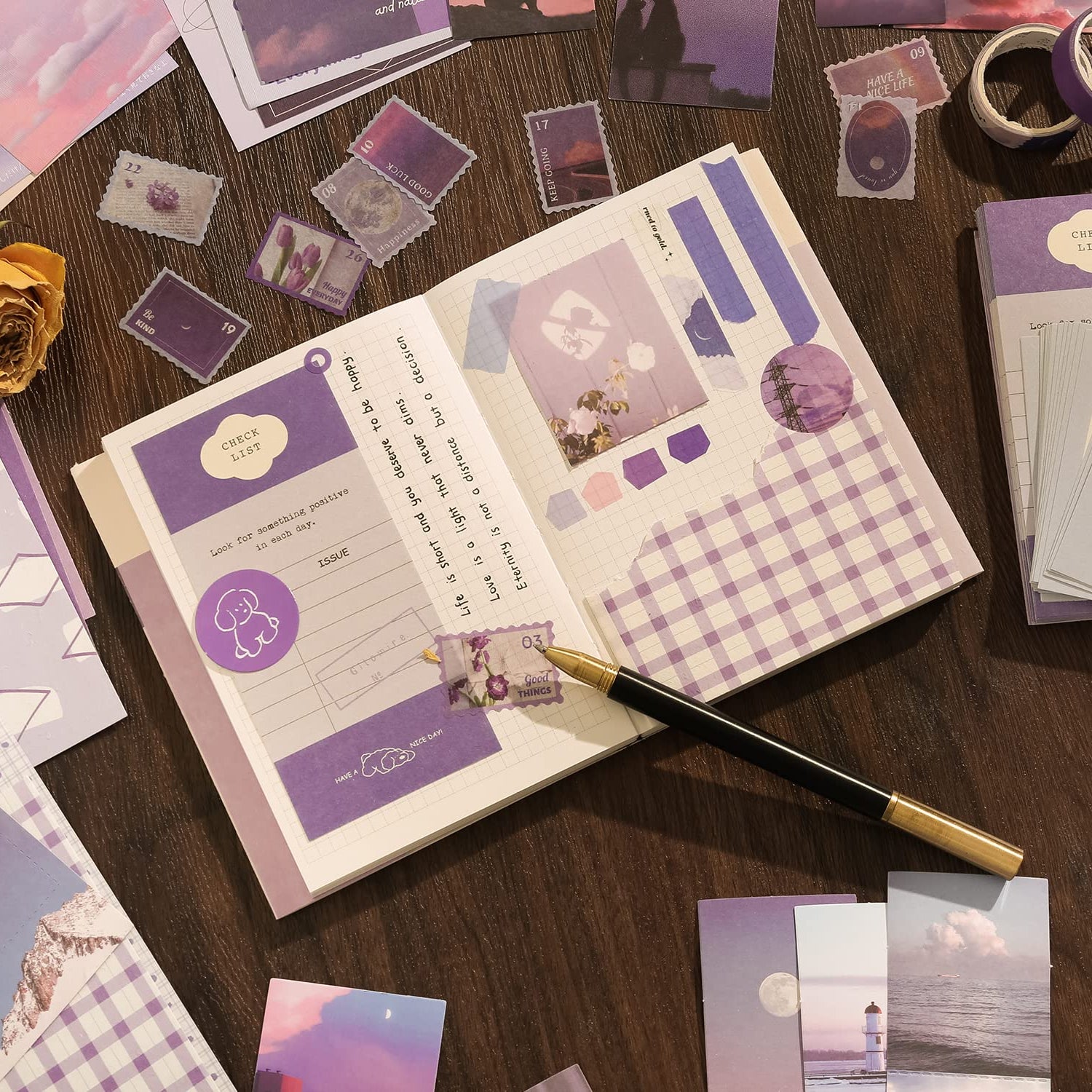 - This scrapbook supplies comes with assorted vintage paper in various designs, their classic prints include plants, flowers, figures, architecture, sky, clouds, moon, ocean, mountain,letter sheet and so on, which look very classic and purple aesthetic scrapbook journal kit, not easy to go out of date, bringing you enjoyment. These different series and sufficient quantity washi paper stickers can meet your daily use and replacement.