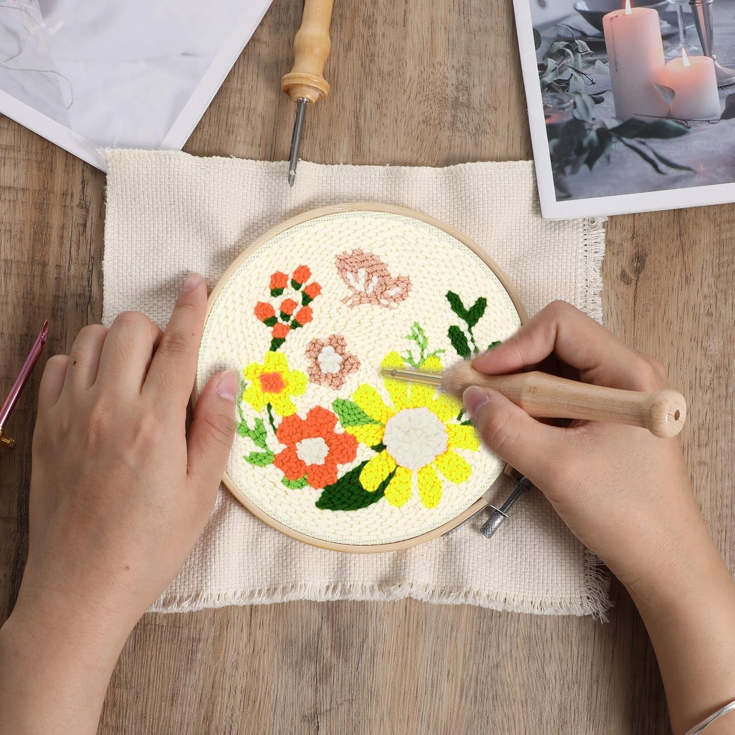 - Quality Material: Different parts of the needle punch kits for adults are made of wood, plastic, stainless steel and copper. The wooden handle is ergonomic and comfortable to hold. The needle punch is not easy to rust, the surface is smooth and sharp, and it is easy to operate