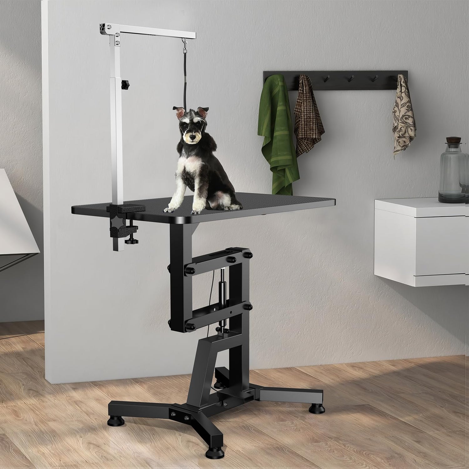 36'' Hydraulic Lift Dog Grooming Table, Adjustable Cat Drying Desktop - Foldable, Adjustable Arm, Portable, Non-Slip Dog Grooming Table for Large Small Dogs at Home, Weight Capacity 200LBS(Black)