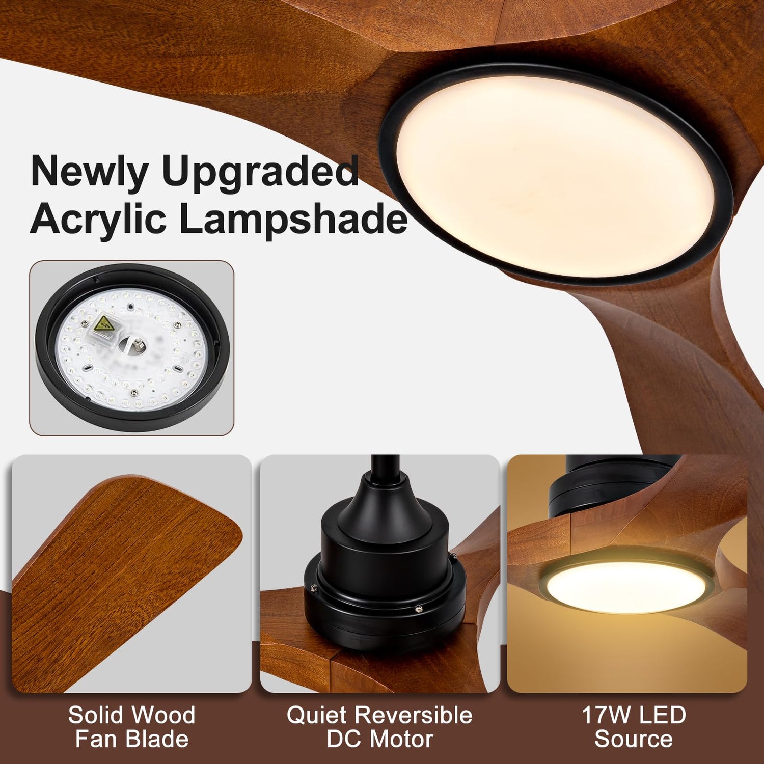 - 36 Inch Ceiling Fans with Lights: This black ceiling fans with lights features three solid wood blades, offering greater durability and stability compared to plastic-blade fans.The 3 blade design not only enhances the overall aesthetics but also creates more even and gentle airflow during operation, reducing air turbulence for a more comfortable experience.It’s an ideal choice for Dining Rooms living rooms, bedrooms, or patios.