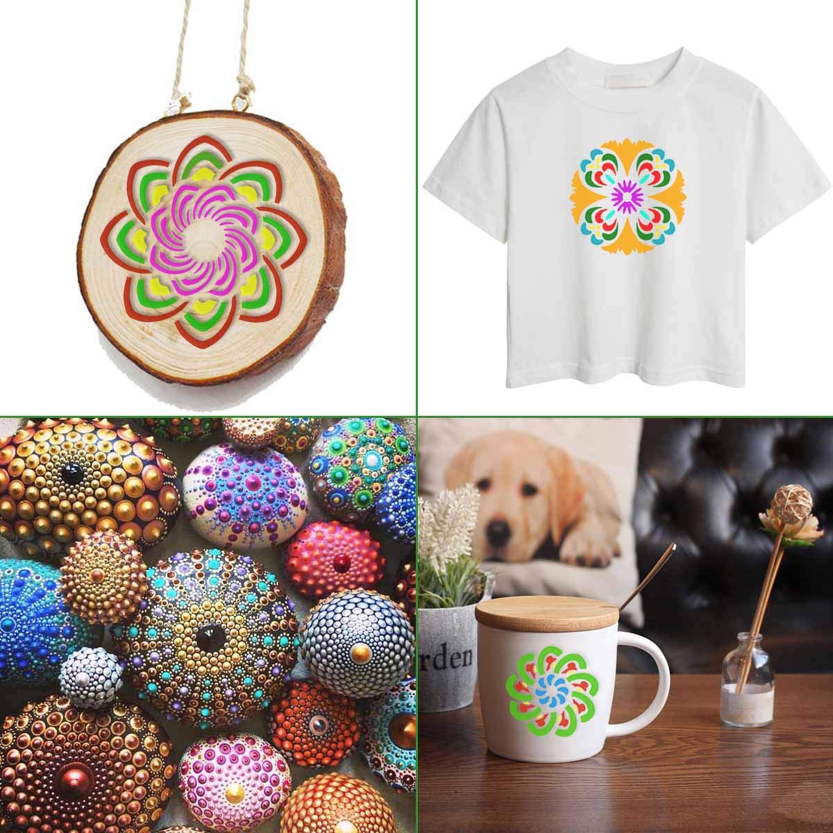 - 【Easy to Use】These mandala dotting painting templates are hollow out design, translucent and easy to use. They are washable and can be used many times. These mandala stencils can help you save a lot of time and trouble. You can use these with acrylic paints, chalk paint, sponge brush tapping, spray paint, small brush when creating mandala dot painting or other crafts. Exert infinite imagination at will, combining these mandala painting templates freely