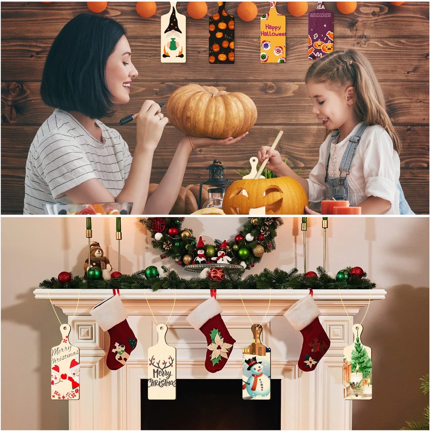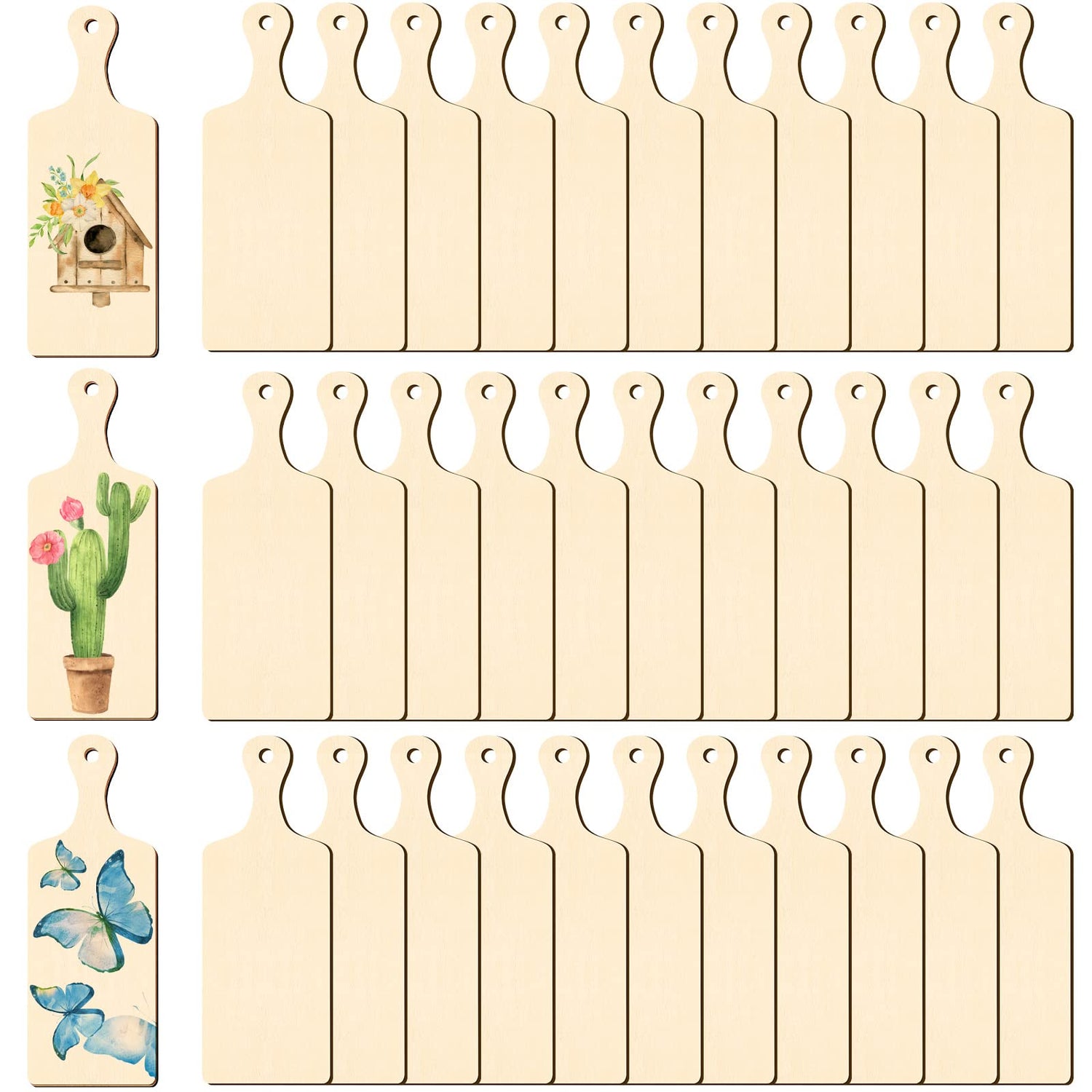 - Ideal Choice for DIY: the wooden chopping boards with handle are in original wood color and blank in surface, suitable for complete various DIY projects, by painting or writing words, wood burning, pasting stickers, laser engraving, sublimating, drilling, dyeing and so on, just according to your own ideas, to create your own kitchen decor, display them on on tiered trays, riser displays or shelves