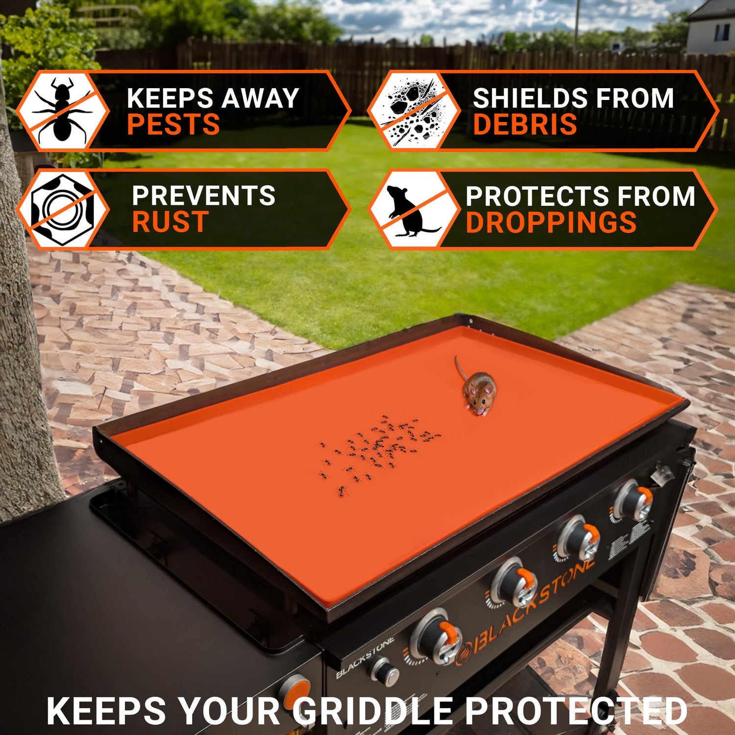 - 【COMPLETE PROTECTION】 The griddle mat offers full protection, this great griddle accessory shields your griddle from rodents, insects, dust, stains, and rust. The high-border design keeps out moisture and debris, keeping your griddle surface dry and pristine.