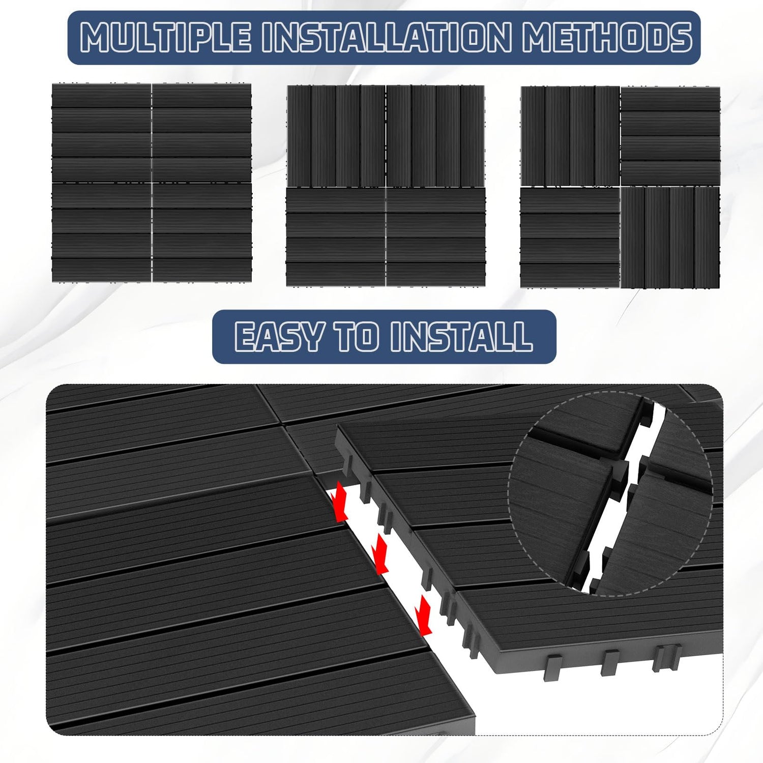 36 sq. ft Plastic Interlocking Deck Tiles, 36 Pack Patio Deck Tiles Waterproof Outdoor Flooring 12" x 12"All Weather Uses for Porch Poolside Balcony Backyard Pathway, Charcoal Gray