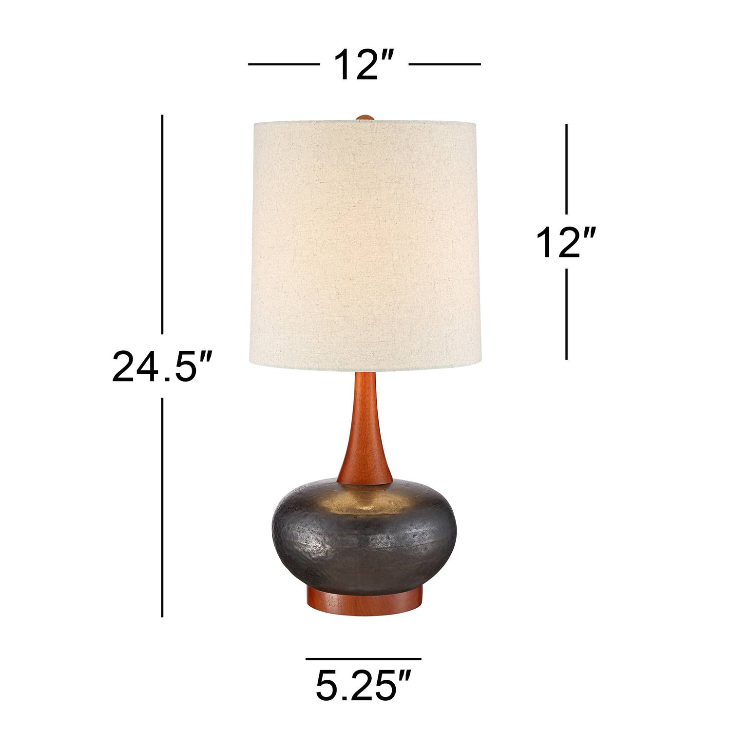 360 Lighting Andi Mid Century Modern Table Lamp 24.5" High Hammered Bronze Ceramic Wood Off White Tall Drum Shade for Living Room Bedroom House Bedside Nightstand Home Office (Color May Vary)