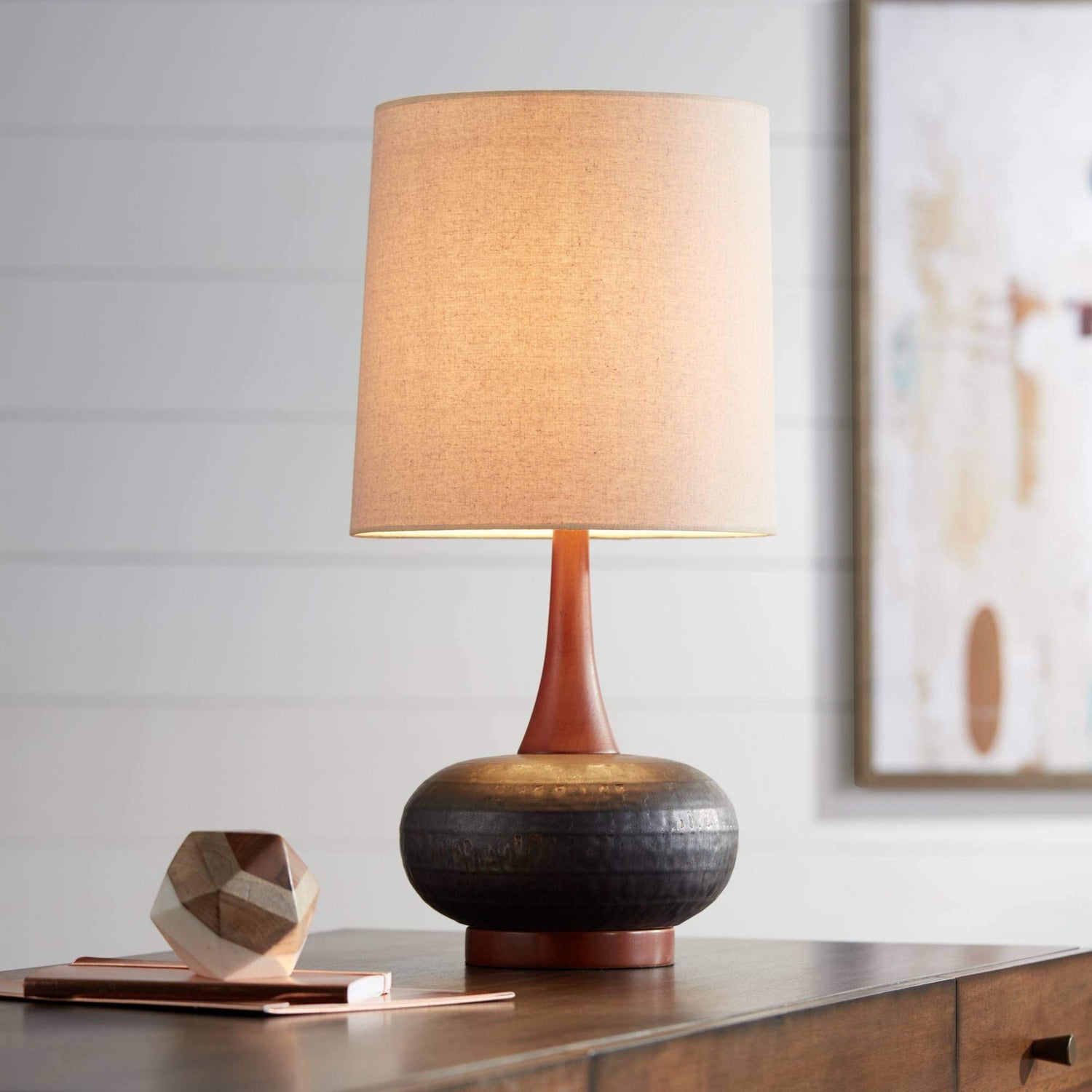 - 【Unique Design】The rounded brown base contrasted with the slim narrow neck offers a unique accent to your space. Mid-Century Modern table lamp. From the 360 Lighting brand.